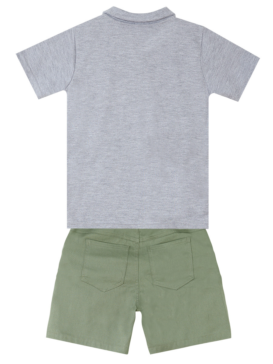 2 parça takım. Pamuklu pike kumaştan, gri melanj, polo yaka t-shirt. Üzeri kaplan aplikeli. Şort, pamuklu gabardin kumaştan üretilmiştir. 2 ön, 2 arka ceplidir. Tüm Denokids ürünleri çocuk güvenlik kurallarına uygun üretilmekte ve tek tek iğne dedektörlerinden geçmektedir. Üst: %65 Polyester %35 Pamuk - Alt: %98 Pamuk %2 Elastan