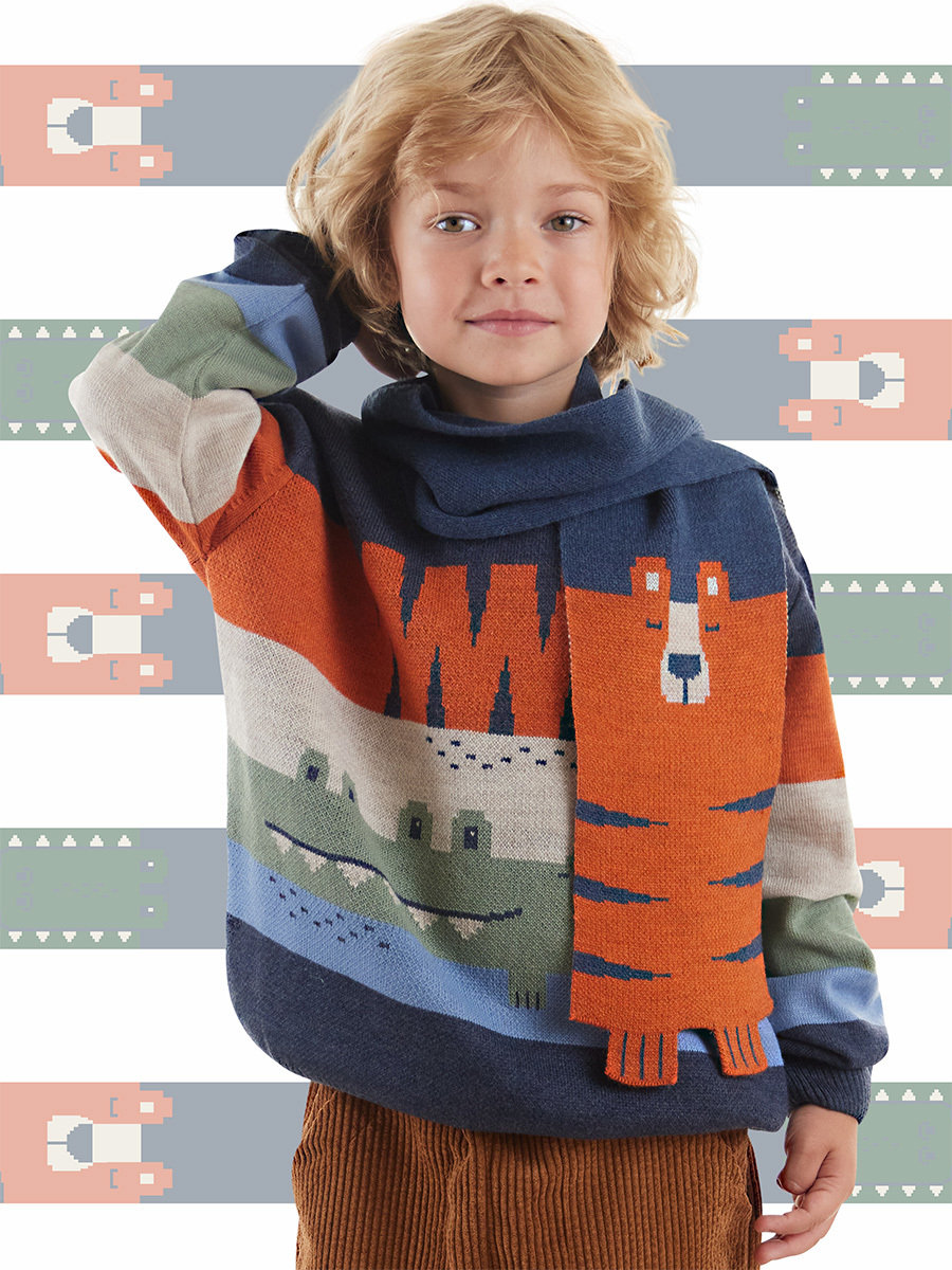 Yumuşak, sıcacık, triko atkı. Üzerinde kaplan ve timsah deseni vardır. Hayvanların patileri 3 boyutlu olarak uçlardan sarkmaktadır. Tüm Denokids ürünleri çocuk güvenliği düşünülerek üretilmiştir ve iğne dedektörlerinden geçirilmiştir. %100 Akrilik