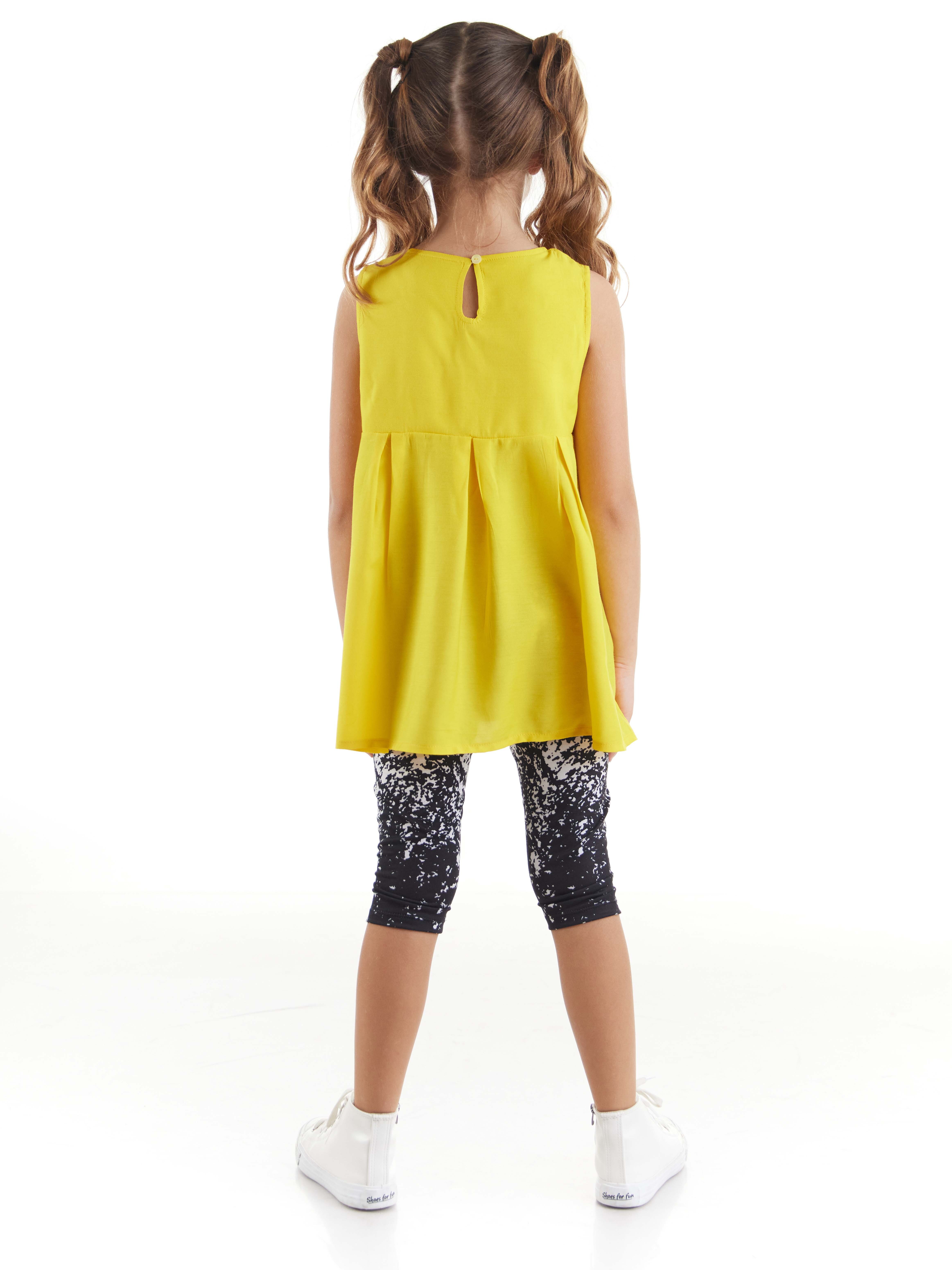 2 parça kız çocuk dokuma tunik ve tayt takım. Siyah-beyaz splash baskılı elastik tayt. Ve takımın tamamlayıcısı dokuma kumaştan, etek ucu kelebek aplikeli tunik. Tüm Denokids ürünleri çocuk güvenlik kurallarına uygun üretilmekte ve tek tek iğne dedektörlerinden geçmektedir.