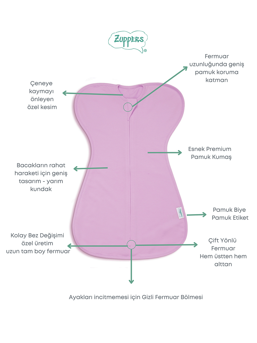 Kollar yukarıda (swaddle up) kelebek şeklindeki ergonomik tasarımı, bebeğin anne karnındaki pozisyona uygundur; Moro refleksine bağlı irkilmeleri etkilerini azaltır.; Bebeğinizin göğsünü sarmalar; sakinleştir ve güven verir.; GOTS sertifikalı organik pamuk kumaşı; hiçbir kimyasal madde içermez.; Bebeğinizi saniyeler içinde kundaklayabilirsiniz.; Hem alttan hem üstten açılan çift yönlü fermuarı kolayca bez değiştirmenizi sağlar.; Her iki tarafa da esneyen kumaşı ile bebeğinizin hareketlerini kısıtlamaz.; Kese şeklindeki tasarımı ile kalça çıkığını engeller ve bacakların rahat hareket etmesini sağlar.; Doğal kumaşı sayesinde 1 tog değerine uyumlu oda sıcaklığında bebeğin vücut sıcaklığını sabit tutar, üşümesini ve terlelemesini engeller.; Battaniye olmadan bebeğinize güvenli ve konforlu bir uyku sunar.; Fermuar başlangıç ve bitiş noktalarının bebeğinizin tenini incitmemesi için fermuar korumaları tasarlanmıştır.; Uyku Tulumu Tog Değerleri: 1 Tog uyku tulumunu 20-22 derece oda sıcaklığında bebeğinizi kolsuz zıbın, uzun kollu pijama ve alt pijama ile ; 22-24 derece oda sıcaklığında uzun kollu body/üst pijama ve alt pijama ile, 24 derece oda sıcaklığında sadece yarım kollu body/zıbın ile giydirebilirsiniz.; Tog değeri oda sıcaklığına bağlıdır, ve kumaşın ısı geçirgenliğini belirtir.; 0-3 ay omuzdan ayağa ürün uzunluğu: 59 cm – Göğüs: 23 cm Kilo: 3-6 Kg 3-6 ay omuzdan ayağa ürün uzunluğu: 65 cm – Göğüs: 27 cm Kilo: 6-9 Kg Benzer renkler ile maksimum 40° sıcaklıkta yıkamanızı öneririz.; Asarak veya sererek kurutabilirsiniz.; Organik pamuk kumaşlarda tamburlu kurutma yapmayınız.; Ürün doğal içerikli organik pamuk ipliğinden üretildiğinden yıkama ve kullanım kaynaklı renk değişiklikleri görülebilir.; (Yumuşatıcı ile yıkama, bebek yağı kullanımı, yüksek sıcaklıkta yıkama vb.; ) %95 Pamuk %5 Elasten Türkiye’de üretilmiştir.;