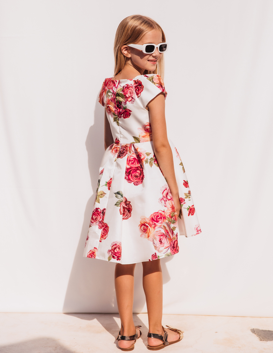 Kırmızı Gül Desenli Özel Gün Kız Çocuk Elbise