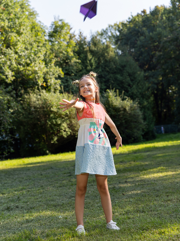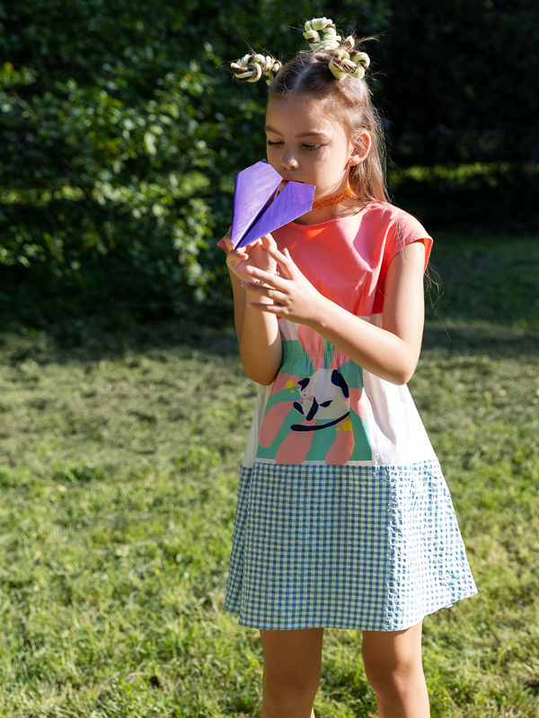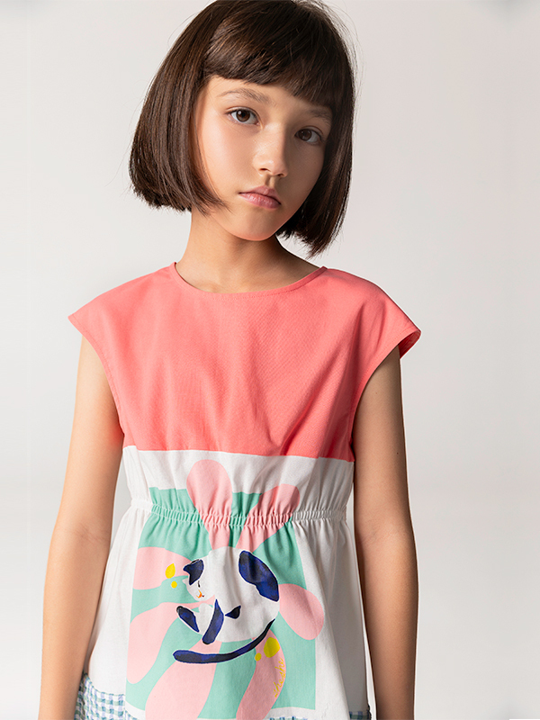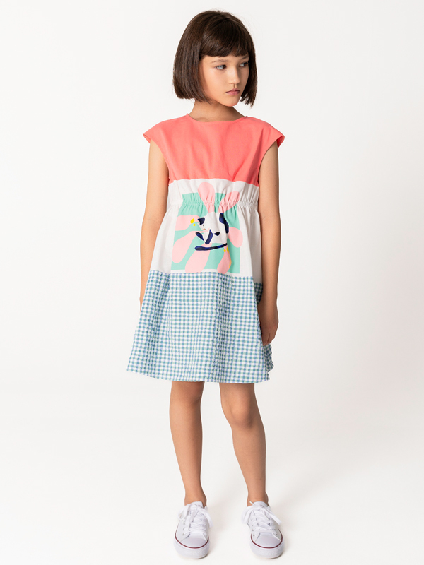 Beli kendinden lastikli bu SheShe Yaz elbisesi pudra pembesş ve bebek mavisinin harika renk kombinasyonu bir araya getirirken bel kısmını ortalayan sade çiçek deseni de elbiseyi eğlenceli ve farklı kılmıştır. Elbise %100 pamuktur ve astarsızdır.