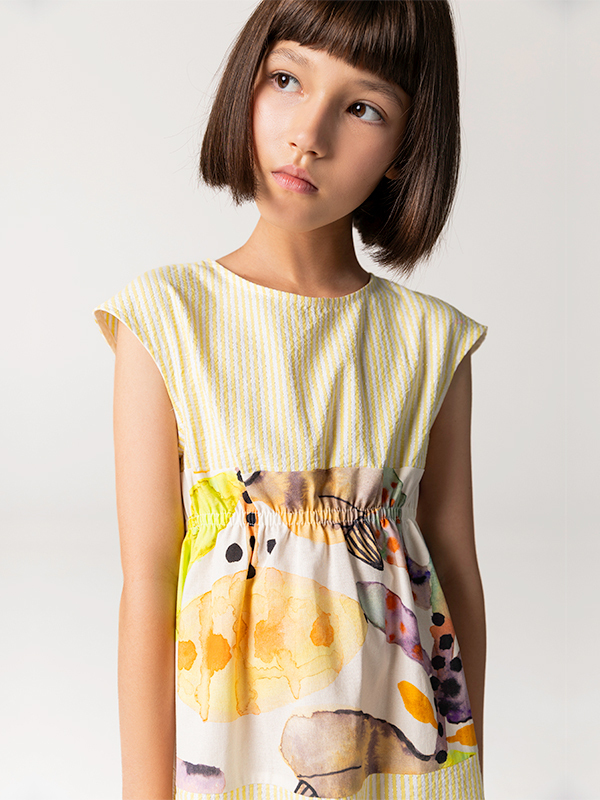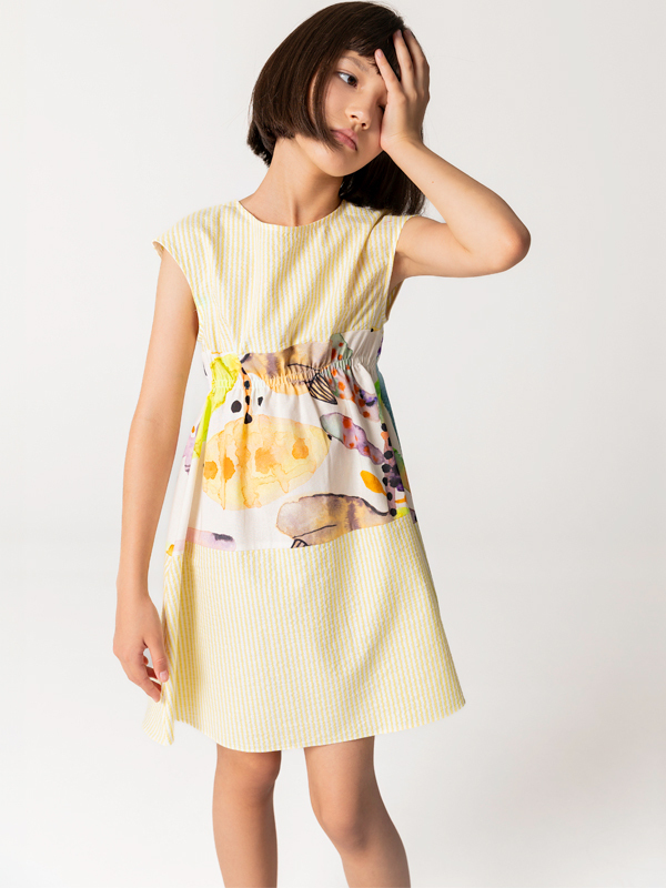 Beli kendindenlastikli bu SheShe Yaz elbisesi sarının en soft tonu ve abstract desenli kısmıyla farklı ve rahat bir tarz sunuyor. Elbise %100 pamuktur ve astarsızdır. %50 PAMUK %48 POLYESTER %1 ELASTANE %1 METALİK İKİNCİ KUMAŞ %100 PAMUK
