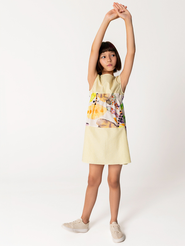 Kısa Kollu Pamuklu Sarı Kız Çocuk Elbise