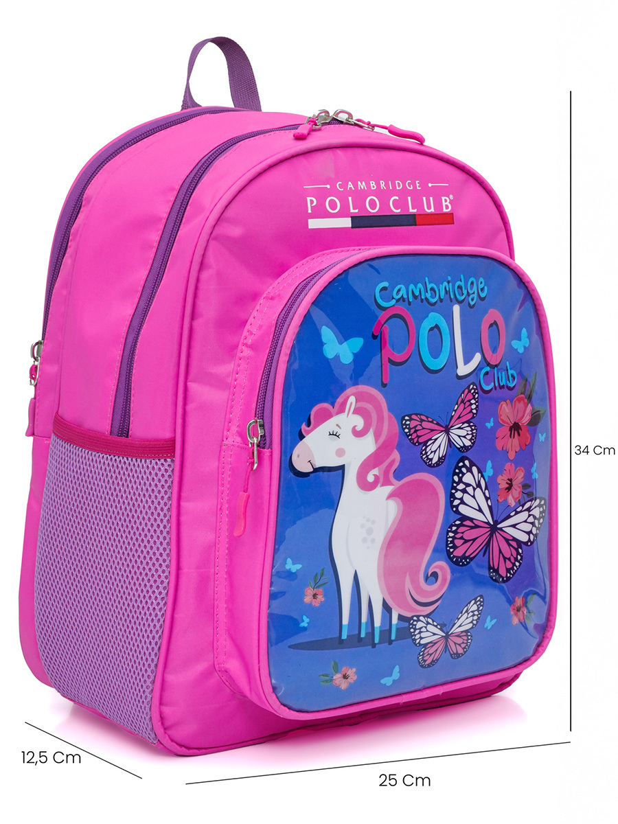Cambridge Polo Club Kız Çocuk Anaokul Çantası, sevimli ve renkli tasarımıyla küçük kızların gözdesi olacak bir çantadır.; Anaokuluna giden çocuklar için özel olarak tasarlanmış bu çanta, pratik özellikleri ile günlük kullanımda ihtiyaç duyulan her şeyi taşıma imkanı sunar.; Renkli detayları ve eğlenceli desenleri ile çocukların hayal gücünü beslerken, güvenli ve konforlu bir kullanım sağlar.; Özellikler: Ölçüler: Genellikle anaokul çağına uygun olan kompakt boyutlar, kitaplar ve küçük eşyalar için yeterli alan sunar.; Malzeme: Dayanıklı kumaş, uzun ömürlü kullanım sağlar ve zorlu koşullara dayanıklıdır.; Renkli Tasarım: Canlı renkler ve eğlenceli desenler, çocukların ilgisini çeker ve onları mutlu eder.; Rahat Taşıma: Yastıklı ve ayarlanabilir omuz askıları, çantanın daha rahat taşınmasını sağlar.; Çoklu Bölmeler: Ana bölme ve yan cepler, oyuncaklar, su şişeleri ve diğer kişisel eşyaların düzenli bir şekilde saklanmasına olanak tanır.; Kolay Erişim: Çocukların eşyalarına hızlı ve kolay ulaşım imkanı sunar.; Fonksiyonel Kullanım: Okulda, kreşte veya günlük aktivitelerde rahatlıkla kullanılabilecek bir tasarıma sahiptir.; Cambridge Polo Club Kız Çocuk Anaokul Çantası, hem şıklığı hem de pratikliği ile miniklerin okul hayatını daha eğlenceli hale getirecek harika bir seçimdir! Polyester