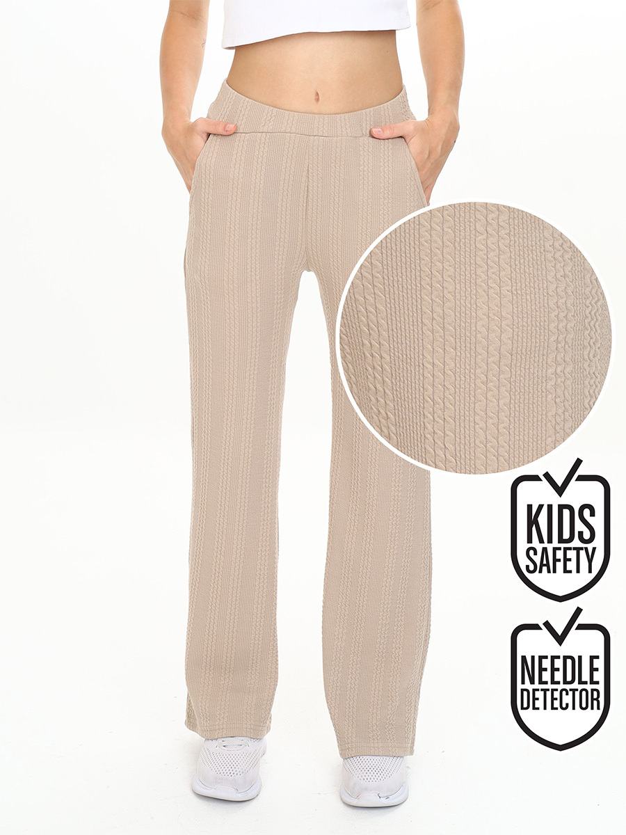 Dokulu ve esnek örme kumaştan mevsimlik örme pantolon, esnek yapısıyla rahatlık sağlar. Beli lastiklidir. 2 yan ceplidir. Diz altından itibaren genişleyen boru paçalıdır. Tüm Denokids ürünleri çocuk güvenliğine uygun üretilmiştir ve iğne dedektörlerinden geçirilmiştir. %98 Polyester %2 Elastan