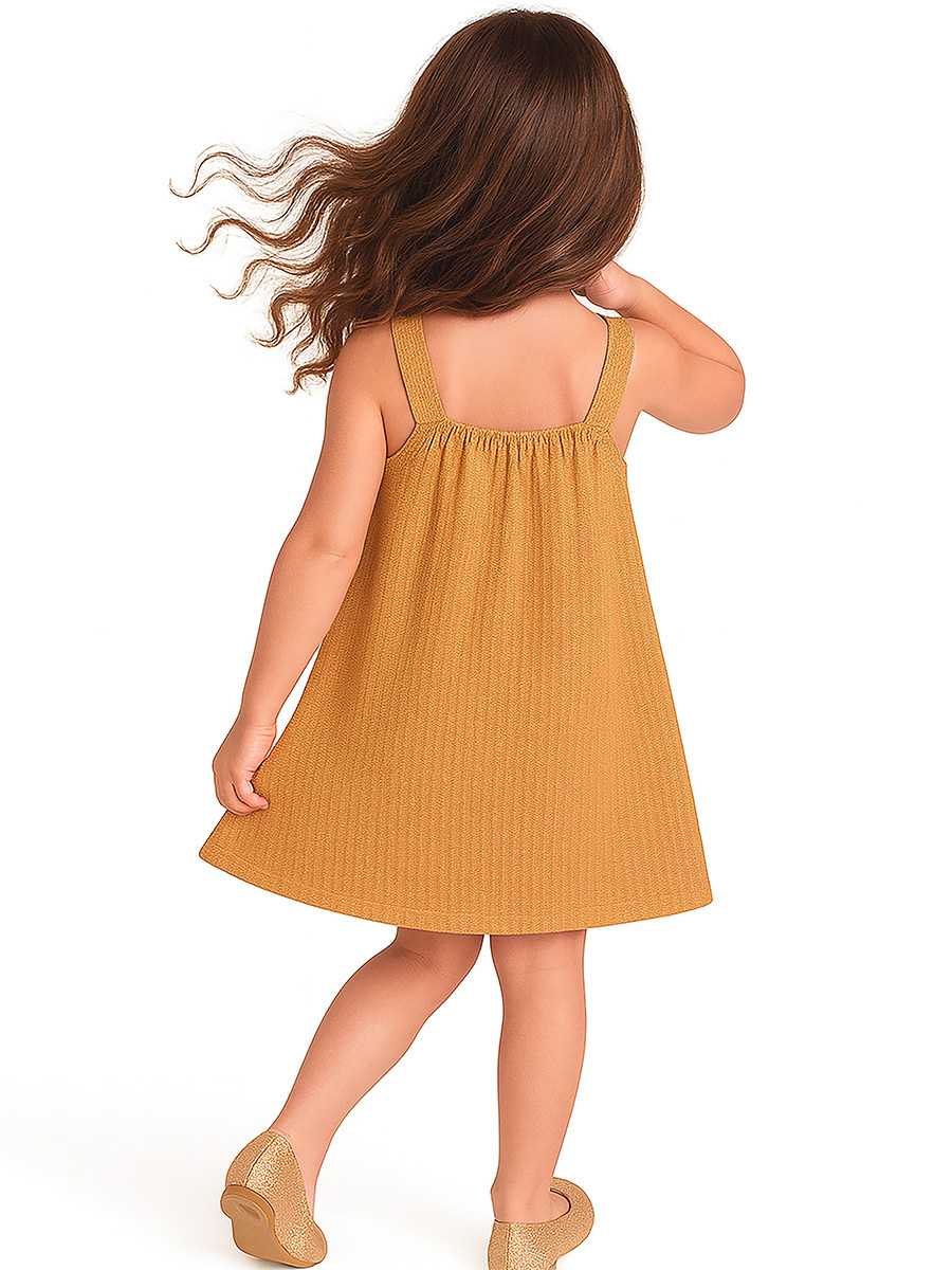 Kız Çocuk Çiçekli Elbise Hardal Sarı İlkbahar Yaz Sezonu 5-10 Yaş