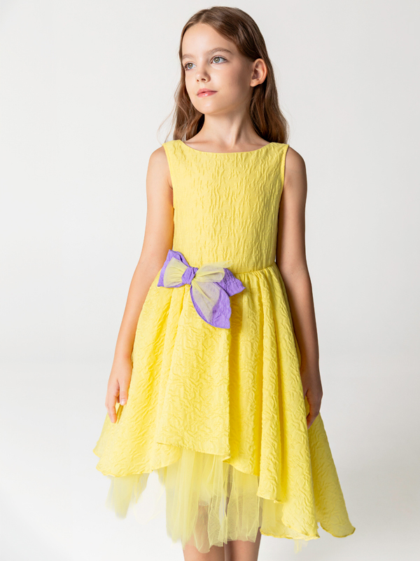Kolsuz Fiyonk Detaylı Asimetrik Kız Çocuk Elbise