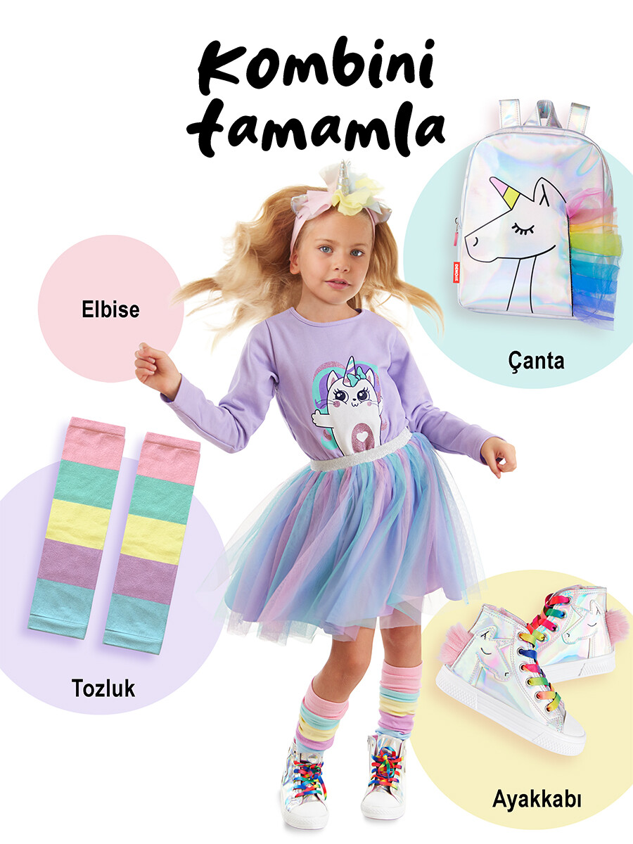 Gökkuşağı Kedicorn Kız Çocuk Tüllü Tütü Kabarık Elbise