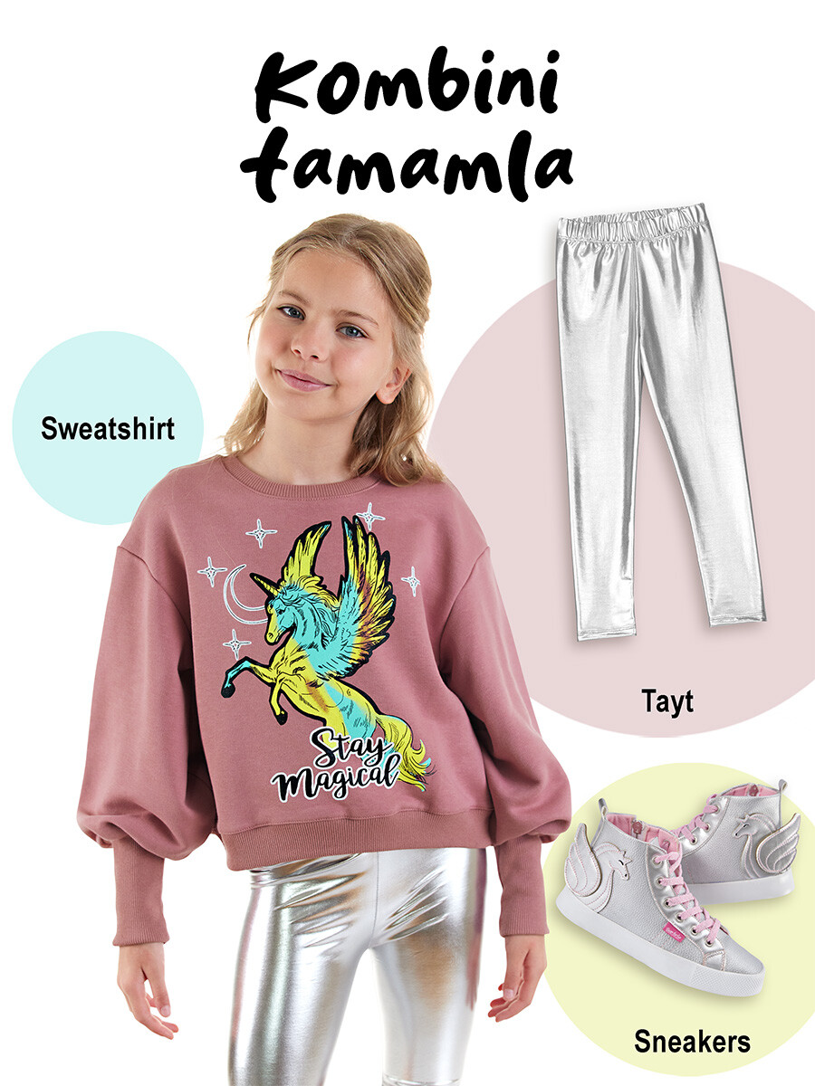 Unicorn Kız Çocuk Gül Kurusu Swetshirt