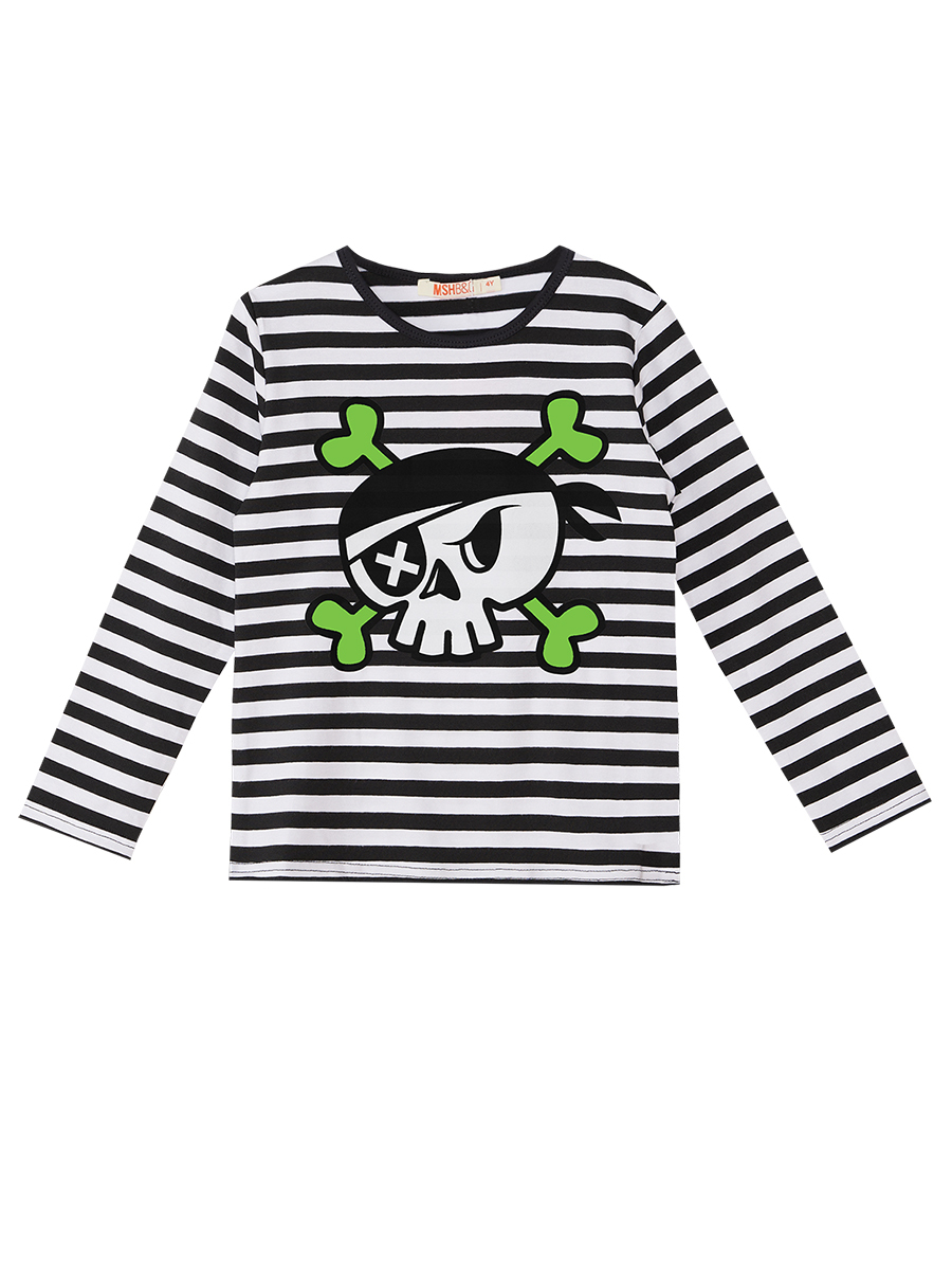 Korsan Kafa Çizgili Erkek Çocuk Kışlık T-shirt Pantolon Takım