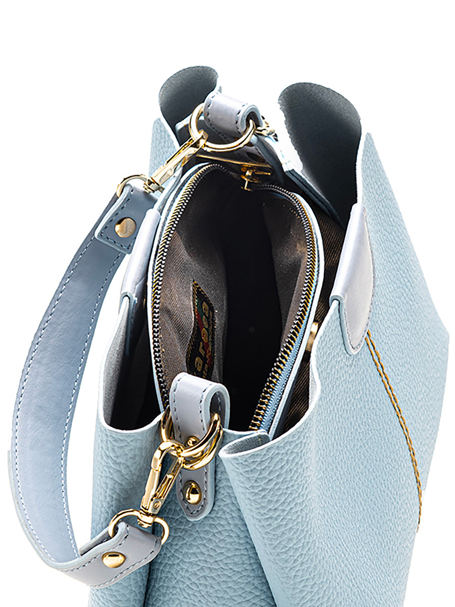 Çok gözlü , fermuarlı uzun askılı omuz çantası Vegan deri