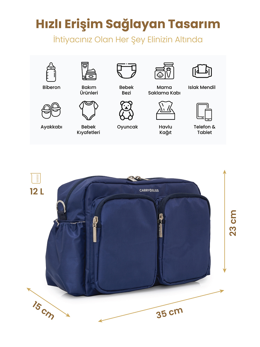 Lacivert DuoPack Çok Gözlü Anne Bebek Çantası