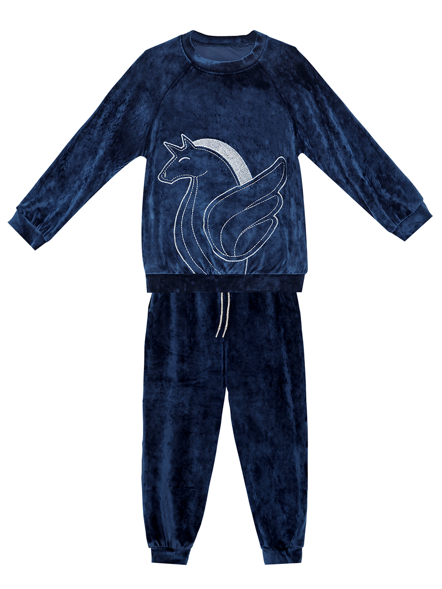2 parça kız çocuk eşofman takım. Lacivert, parlak kadifeden üretilmiştir. Sıcacık ve yumuşacık. Eşofman üstünde simli ip ile unicorn deseni nakışlanmıştır. Eşofman altı 2 ceplidir. Beli lastikli ve kordonludur. Tüm Denokids ürünleri çocuk güvenliği düşünülerek üretilmiştir ve iğne dedektörlerinden geçirilmiştir. Üst,Alt: %95 Polyester %5 Elastan