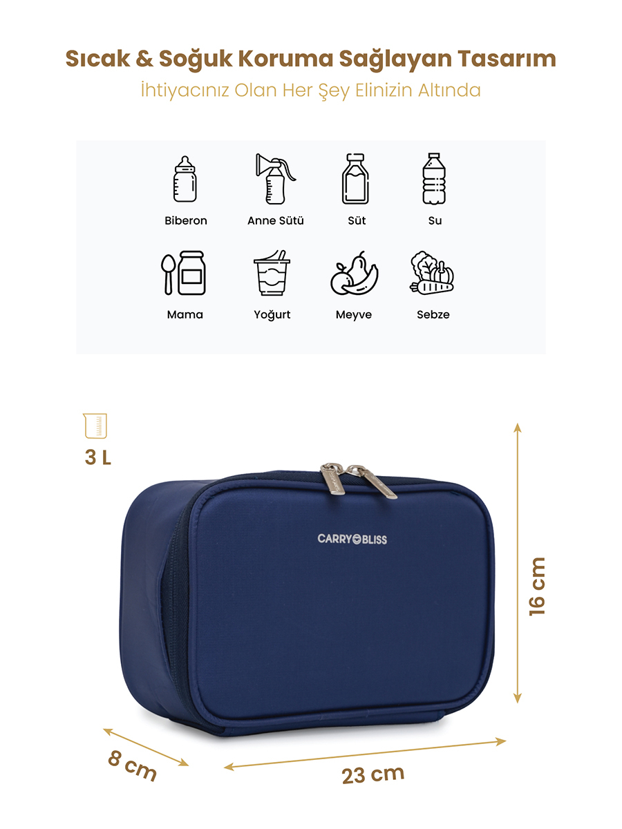 ThermaPouch, ebeveynlerin dışarıda geçirdiği zamanlarda mama ve atıştırmalıkları güvenle taşıyabilmesi için Carry Bliss’in geliştirdiği özel bir çözüm olarak ortaya çıktı. Bebeklerin beslenme düzeninde sıcaklığın ve hijyenin ne kadar önemli olduğunu bilen marka, bu ihtiyaçtan ilham alarak hem işlevsel hem de kompakt bir tasarım oluşturdu. ThermaPouch’un termal yapısı, mamanın ve sağlıklı atıştırmalıkların saatlerce ideal sıcaklıkta kalmasını sağlar. Antibakteriyel astarlı iç yüzey ise yiyecekler için her zaman temiz ve güvenli bir alan sunar. Hafifliği ve kompakt ölçüleri sayesinde ister büyük bir çantanın içine kolayca yerleştirilir, ister tek başına kolaylıkla taşınır. Yoğun şehir yaşamında, parka giderken veya kısa bir yolculuk sırasında ebeveynlere pratiklik kazandırmak için tasarlanan ThermaPouch, beslenme eşyalarını düzenli, temiz ve doğru sıcaklıkta tutarak çocukların ihtiyaçlarına anında yanıt verir. %100 polyester
