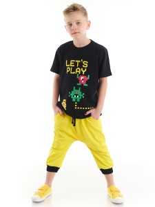 2 parça erkek çocuk t-shirt ve kapri boy pamuklu pantolon takım. Pamuklu penye kumaştan, üzeri baskılı, kısa kol t-shirt. Takımın tamamlayıcısı pamuklu penye kumaştan, düşük ağ kesimli, rahat, yanları cepli kapri. Beli hem lastik hem de kordonludur. Bu ürün Avrupa standartlarında "Çocuk Güvenliği Kuralları"na uygun olarak üretilmiştir. İğne dedektörlerinden geçirilmiştir. Alt, Üst %95 Pamuk %5 Elastan