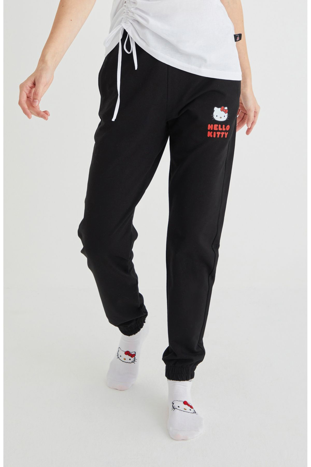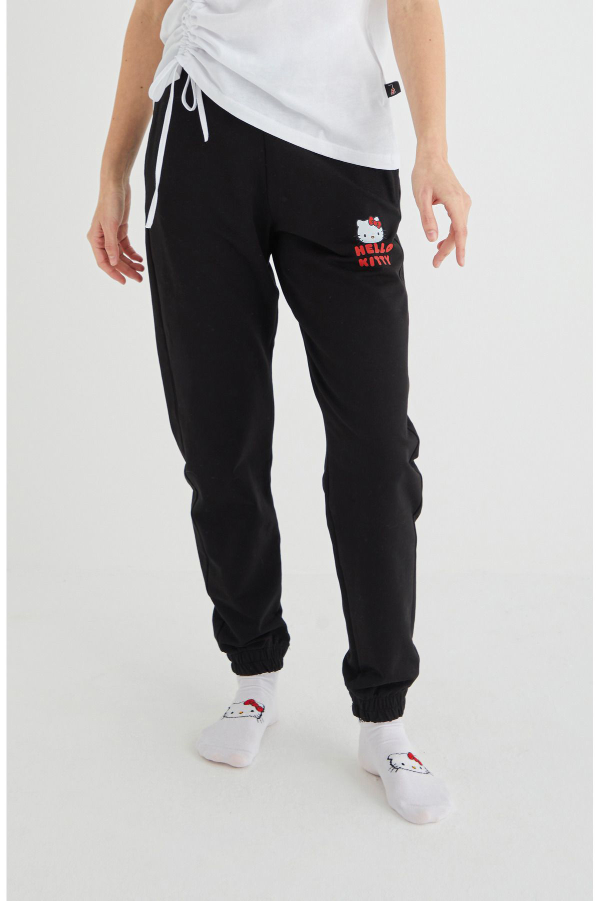 Rozina nin kadın hello kitty lisanslı koleksiyonundan Hello kitty Baskılı Siyah Pamuklu Likralı Jogger Eşofman Altı. Ürün Özellikleri: Hello Kitty Sanrio Tarafından Lisanslı Üründür. ; Pamuklu Şardonsuz 2 İplik ; Gizli Cep ; Materiel: %92 Pamuk %8 Elastan; Modelin Ölçüleri: Boy: 172cm, Vücut Ölçüsu: 84/60/88 Beden: 36 ; Modelin üzerindeki ürün S bedendir ;