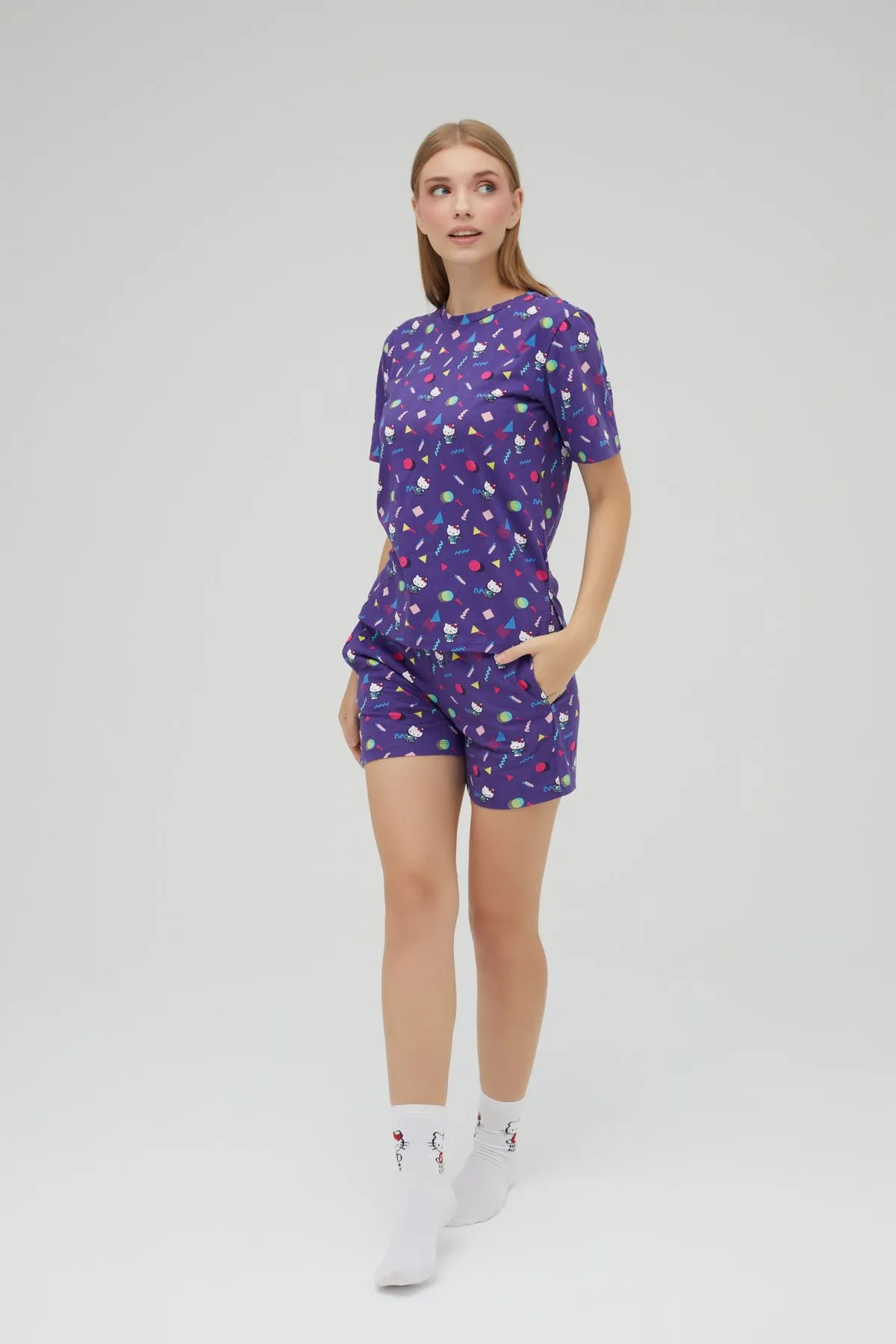 Rozina nin kadın hello kitty lisanslı Pijama koleksiyonundan Hello kitty Desenli Bisiklet yaka Kısa Kollu şortlu Pijama Takım Roz-252. Ürün Özellikleri: Hello Kitty Sanrio Tarafından Lisanslı Üründür.; ; 100% Pamuk; Bisiklet Yaka Kısa Kol Pijama Takım; Örme Kumaş