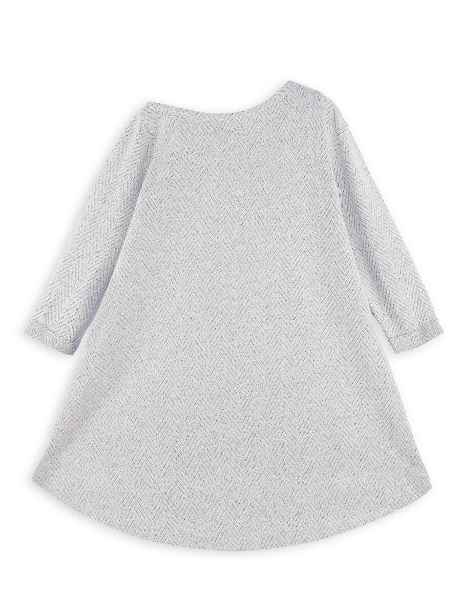 Medium thick cotton fabric girl's gray dress. Long sleeves, off shoulder, below knee length. The skirt of the dress is asymmetrical. The necklace does not belong to the product. It can be combined with any accessory. All Denokids products a