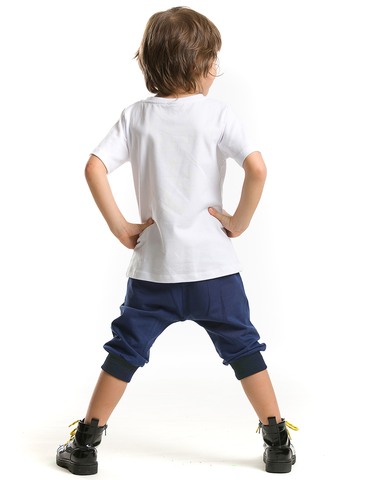 2 parça takım. Baskılı t-shirt ve düşük ağ kesimli, vazgeçilmez bir rahatlıkta, bir paçası yıldız aplikeli, baggy tarz kapri boy pantolon. Üst: 92% pamuk, 8%elastan. Şort: 100% pamuk