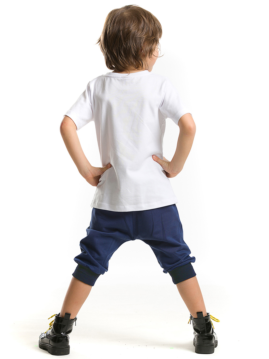 2 parça takım. Baskılı t-shirt ve düşük ağ kesimli, vazgeçilmez bir rahatlıkta, bir paçası yıldız aplikeli, baggy tarz kapri boy pantolon.