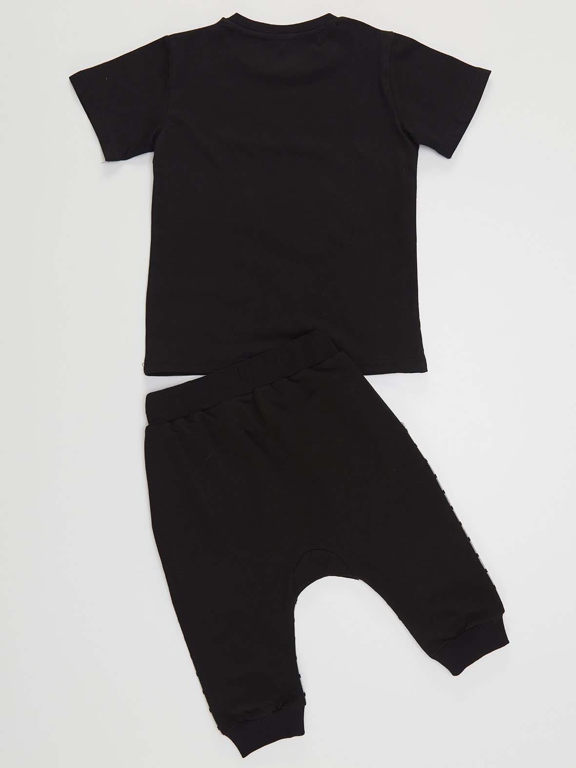 2 parça erkek çocuk t-shirt ve kapri boy pamuklu pantolon takım. Pamuklu penye kumaştan, üzeri kaplan baskılı t-shirt. Takımın tamamlayıcısı pamuklu penye kumaştan, düşük ağ kesimli, rahat, önü çizgili arkası düz kumaştan kapri. Beli lastik ve kordonludur. 2 yan cebi vardır. Bu ürün Avrupa standartlarında "Çocuk Güvenliği Kuralları"na uygun olarak üretilmiştir. İğne dedektörlerinden geçirilmiştir.