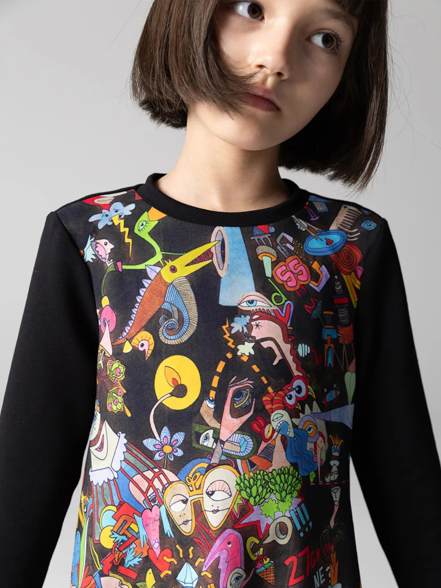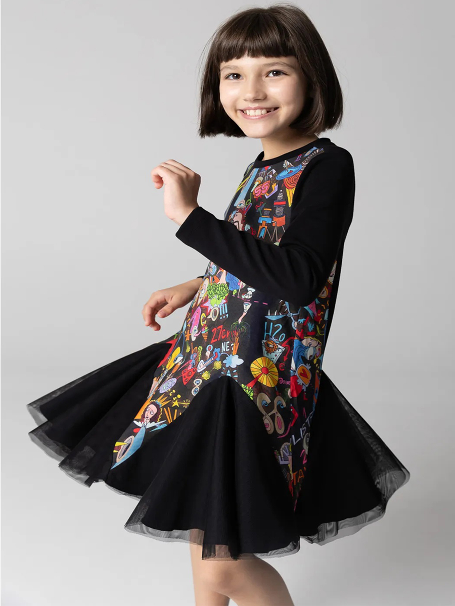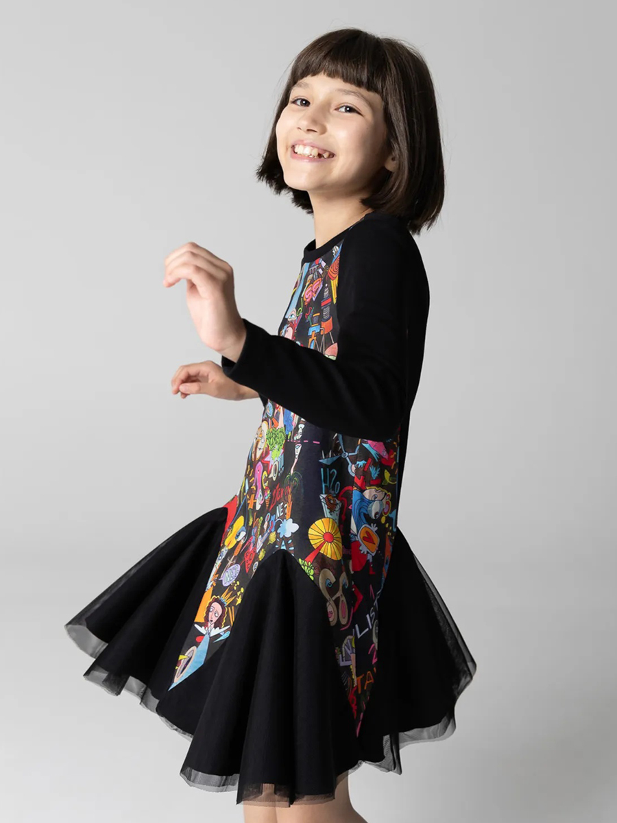 Sanatçı Mehmet Sinan tarafından tasarlanmış desen ile tasarlanmış elbisenin etek ucunda tül detayları vardır. %80 Polyester %16Viskon %4Elastan İkincil Kumaş %86 Polyester %4 Elastan /Astar %100Pamuk