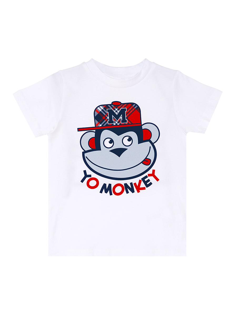 2 piece boy shorts set. Monkey printed T-shirt and plaid cotton shorts with a funny monkey applique at the back. Top: 95% Cotton 5% Elastane - Bottom: 92% Cotton 8% Elastane