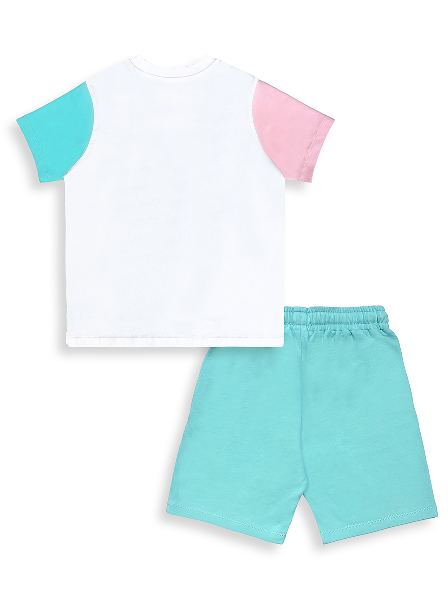 Erkek Çocuk Takım Canavar Baskılı %100 Pamuk T-Shirt Pamuk Şort Yazlık Takım