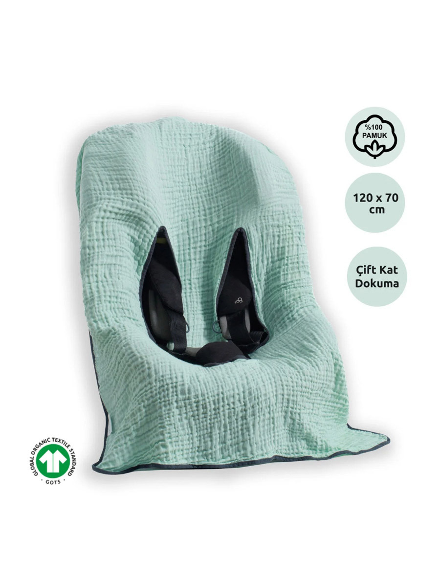 %100 Organik Pamuk & GOTS Sertifikalı - Çift kat dokuma müslindir.; ; 0-18 kg Oto Koltuklarına uyumludur.; ; 9-36 kg Oto Koltuklarına uyumludur.; ; 0-18 kg Anakucağı taşıma pusetine uyumludur.; ; Miniklerin rahatça seyahat etmesi için tasarlanan kılıfımız hem oto koltuğu hem anakucağı içinde kullanmaya uygundur.; ; Kemer boşlukları ile oto koltuğuna ve anakucağına rahatça yerleştirilir, lastiği sayesinde baş kısmından kayma yapmaz.; ; Bebeğin emniyet kemeri kolaylıkla kapatılabilir.; ; Koltuğun polyester içerikli ve kalın kumaşı ile bebeğinizin temasını engeller.; ; %100 pamuk ve hava alan doğal kumaşı ile terlemeyi azaltır, nemlendiğinde hızla kurur.; ; Yumuşak kumaşı ile bebek cildini tahriş etmez.; ; Kullanım kolaylığı sağlar.2 kat dokuma ile üretilen müslin kumaşımız yıkandıktan sonra kendiliğinden bürümcüklenen bir dokuya sahiptir.; ; İstenirse ütülenerek tekrar düzleştirilebilir.; ; %100 organik pamuktur, GOTS sertifikalıdır.; ; Dokuma etiketi dahi %100 pamuktan üretilmiştir.; ; Ürün Ölçüleri: 120 x 70 cm %100 Organik Pamuk Çamaşır makinesinde ve elde 30°C derecede yıkanabilir.; ; Türkiye’de tasarlanmış ve üretilmiştir.; %100 Organik Pamuk