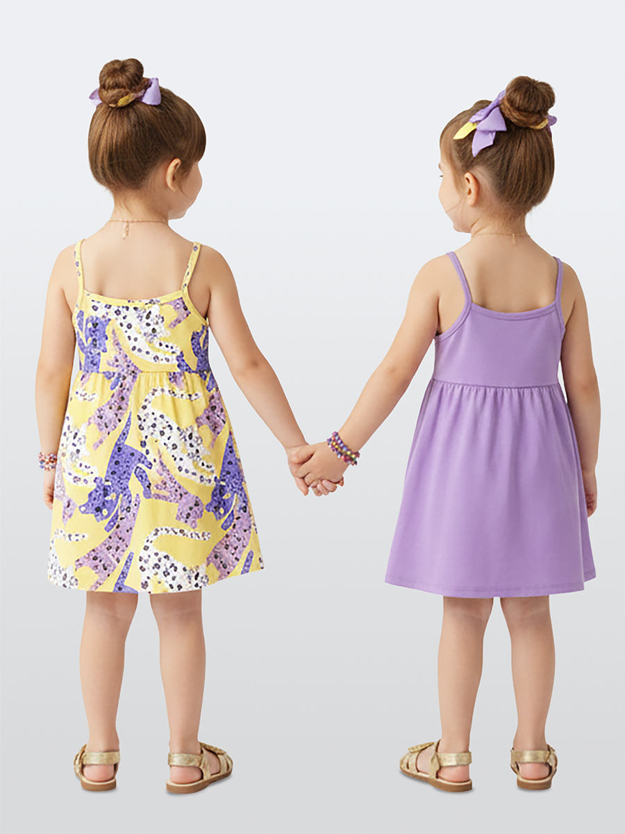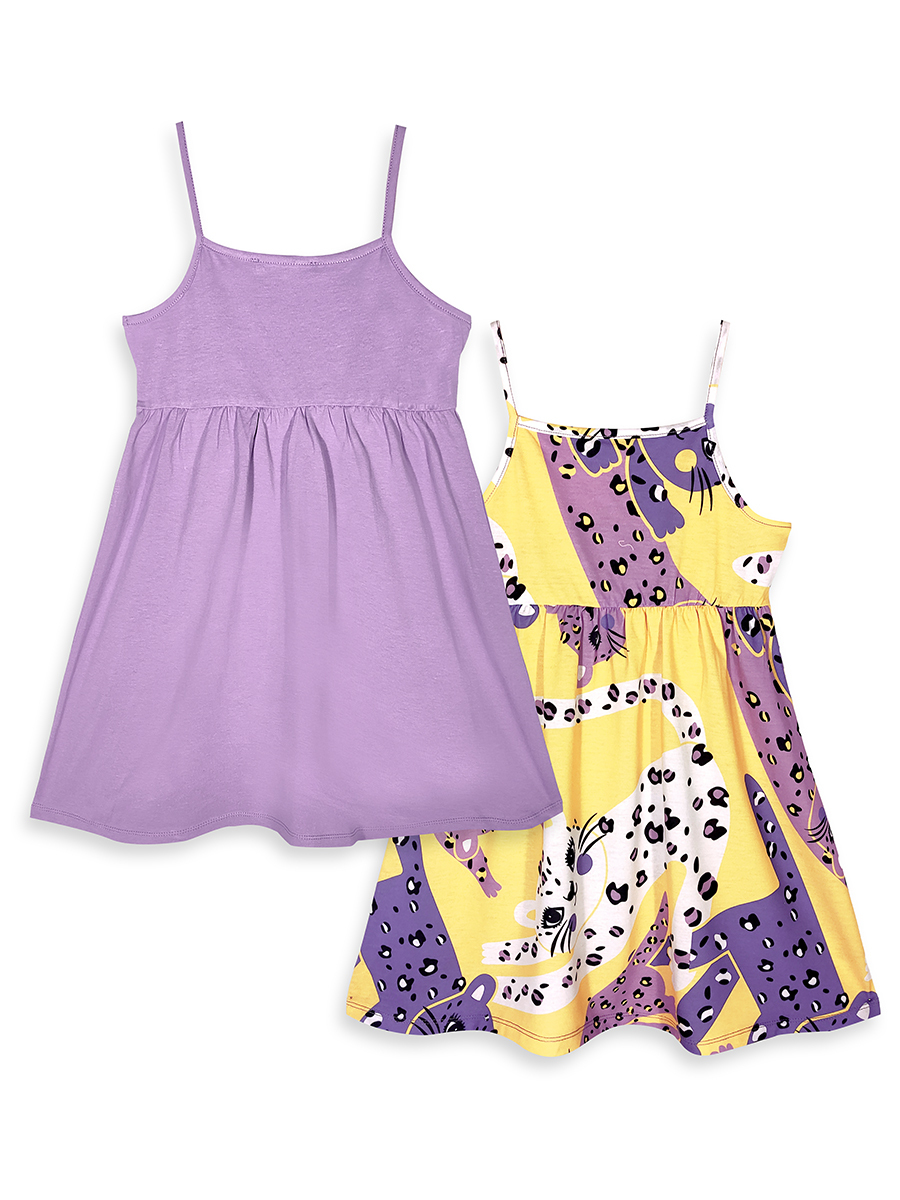 2 adet üründen oluşan "Kız Çocuk Elbise". Elbiselerin her ikisi de ince askılı ve belden büzgülüdür. Lila renk elbisenin etek uçlarında sevimli leopar baskısı bulunmaktadır. Diğer kız çocuk elbisenin tüm yüzeyi leopar deseni baskılıdır. Yaz ayları için hafif kumaştan üretilmiştir. Hem günlük elbise olarak hem de özel günlerde kullanılabilir. Üzerindeki leopar baskıları çocukların hayal dünyasını destekler. Denokids olarak çocukların renklerle büyüdüğünü biliyor ve “Çocuklar hayallerini giysin!” diyoruz. Çünkü büyüdüklerinde zaten yeterince ciddi kıyafetler giyecekler—şimdi eğlenme zamanı. Tüm Denokids ürünleri, en yüksek Çocuk Güvenliği Standartlarına göre üretilir. Üretim aşamasında oluşabilecek iğne kırıklarını tespit etmek için her bir ürün tek tek metal dedektöründen geçirilir. Lila: %96 Pamuk %4 Elastan, Sarı: %96 Polyester %4 Elastan