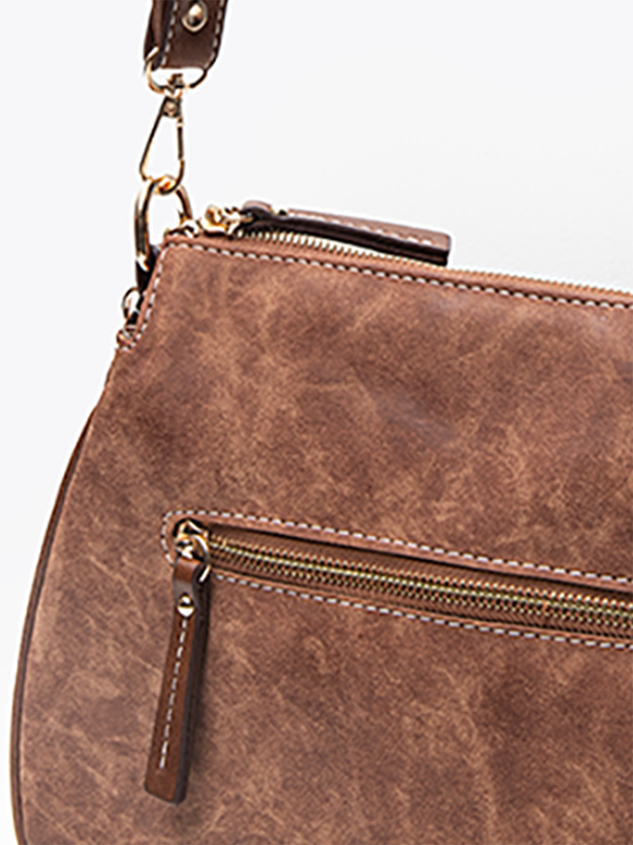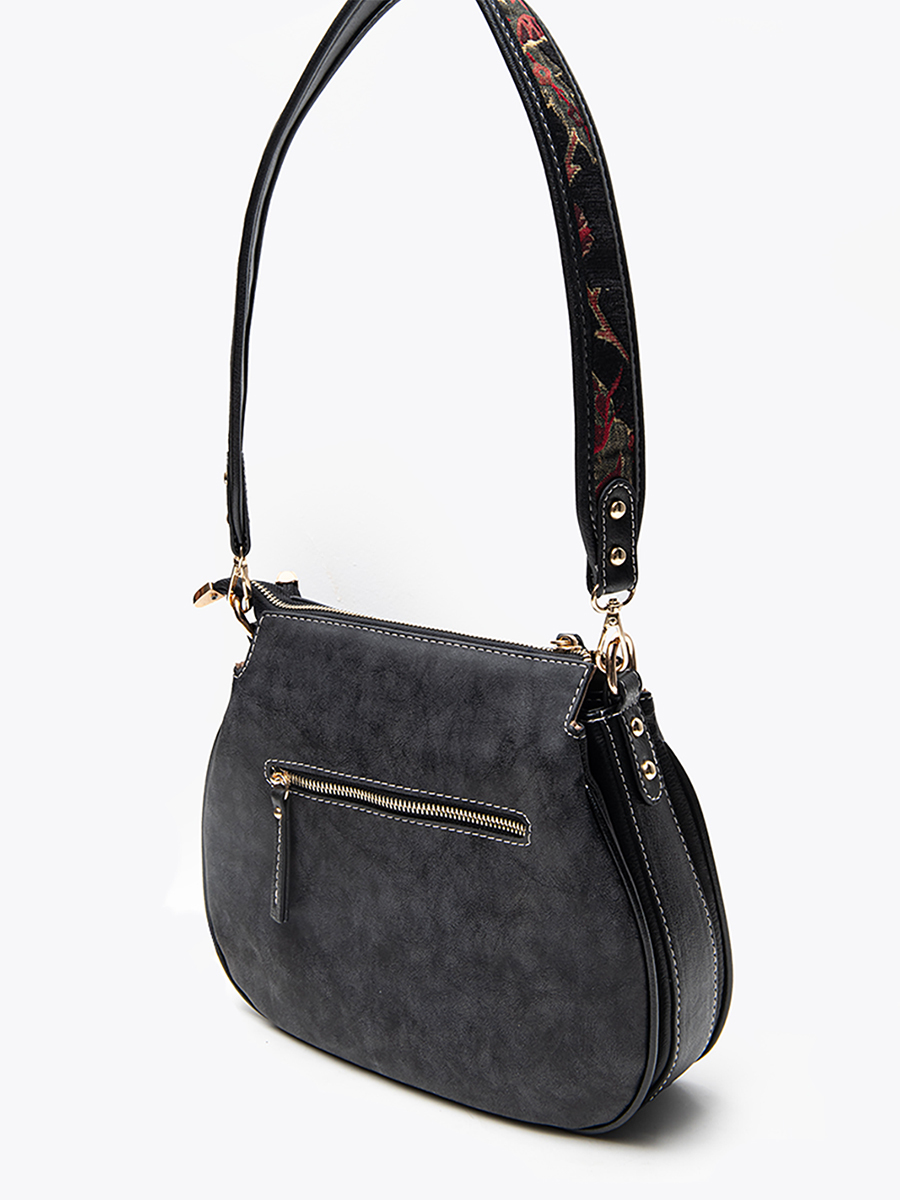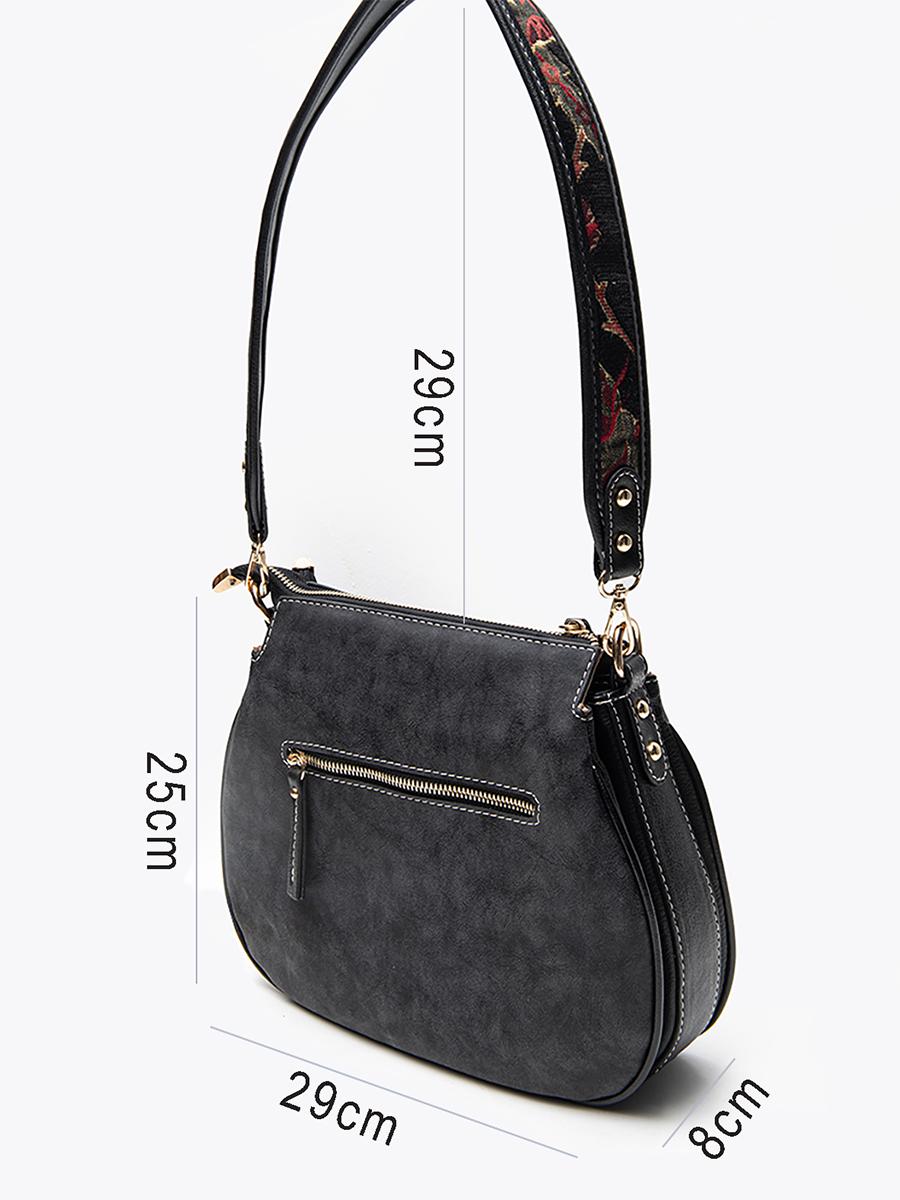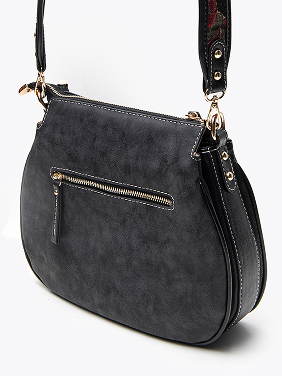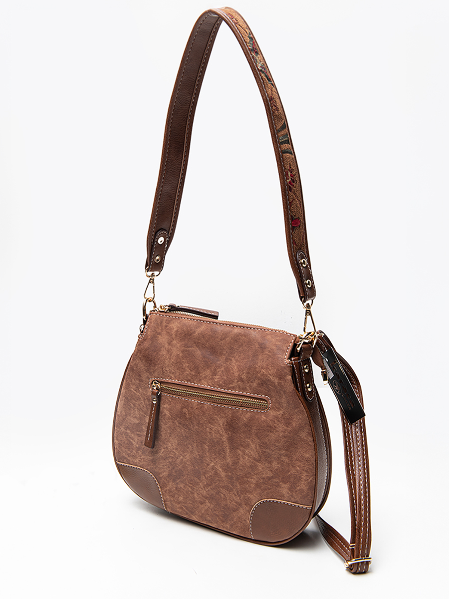 İşlemeli uzun asılı, Kadın omuz çantası. İç astar : Tekstil, Materyal: Vegan Nubuk