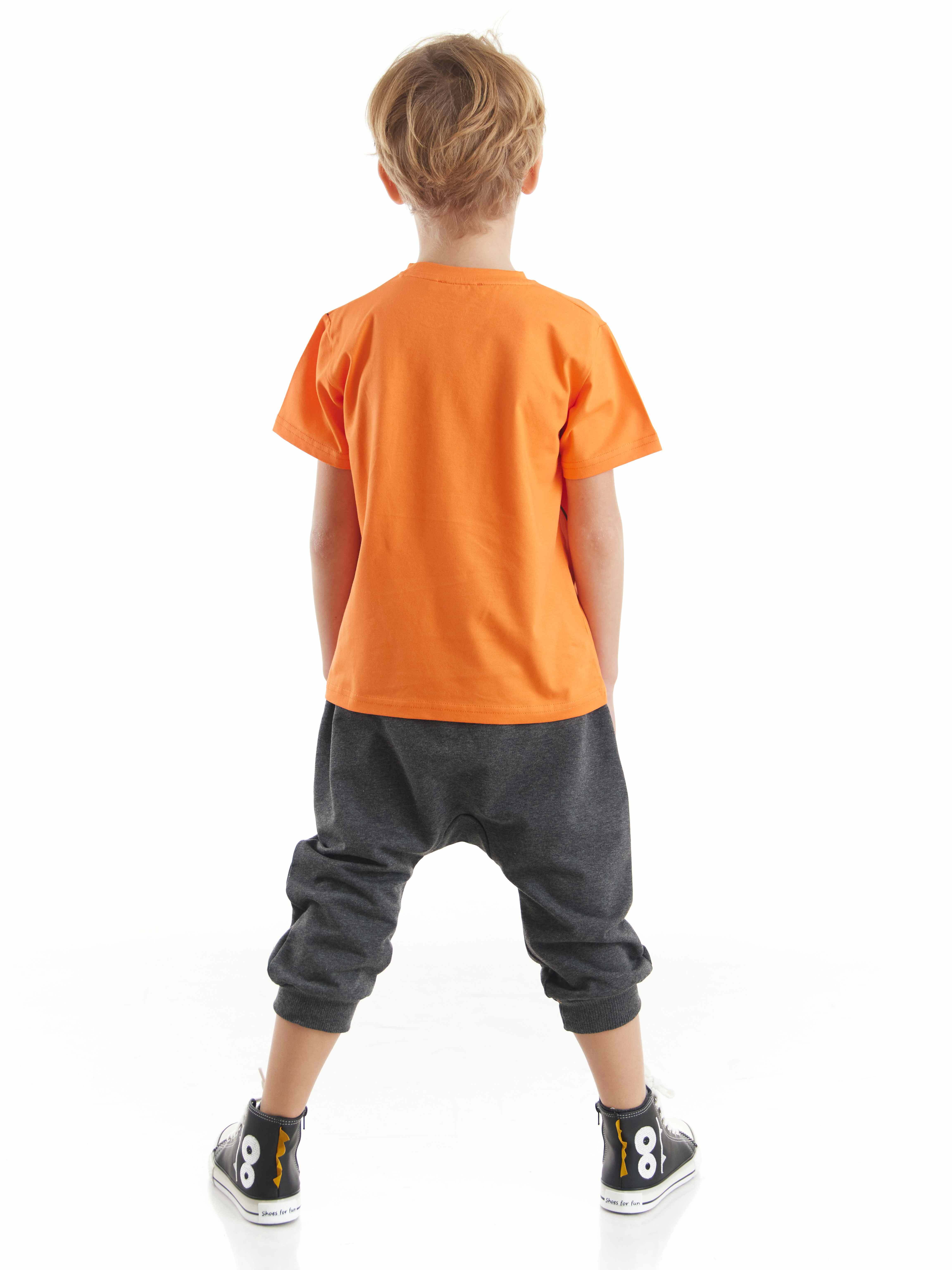 2 piece boy set. Cotton jersey t-shirt with a fox print on. The set is completed with its cotton harem style capri pants. Has 2 front pockets. All Denokids Products are manufactured within the Kids Safety Guideline. Has been inspected by me