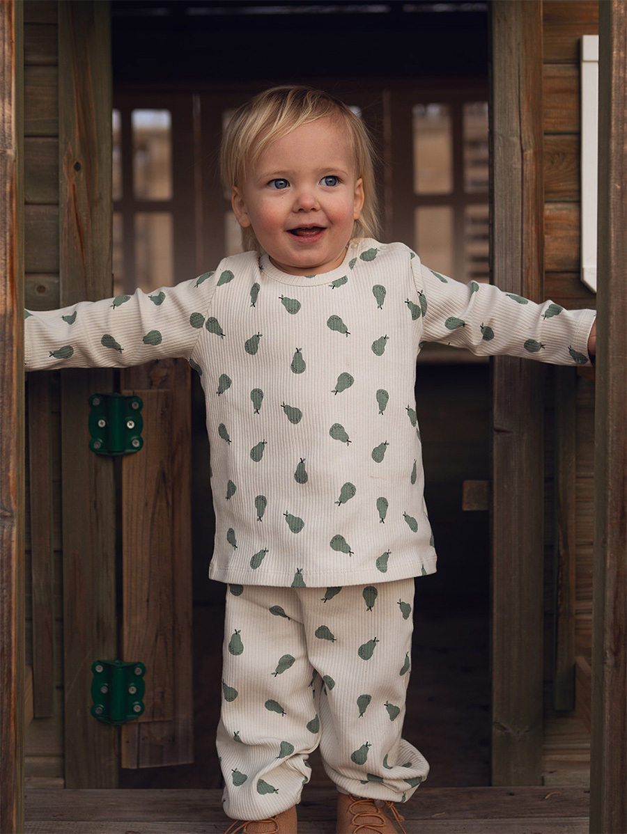 Iki parça t-shirt pantalon set. Uzun kollu t-shirtumuz kolay giyim konforu sağlamak amacıyla omuzda çıt çıtlı olarak tasarlanmıştır. Elastik belli ve paçalı pantalonumuz bebeğinizin beline göre ayarlanabilir şekilde kordonlu olarak tasarlanmıştır. Bebeğinizin güvenliğini sağlamak amacıyla kordonlar dikilmiştir. %95 Organik Pamuk %5 Elastan