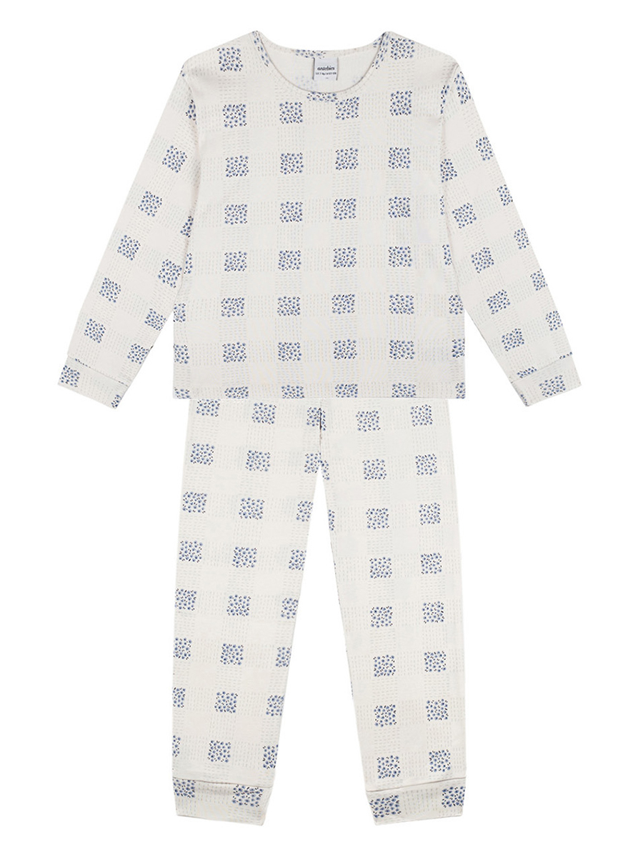 İki parça uzun kollu t-shirt, uzun alt pijama set. Elastik belli altımız ile kombinlenmiştir. %100 Organik Pamuk