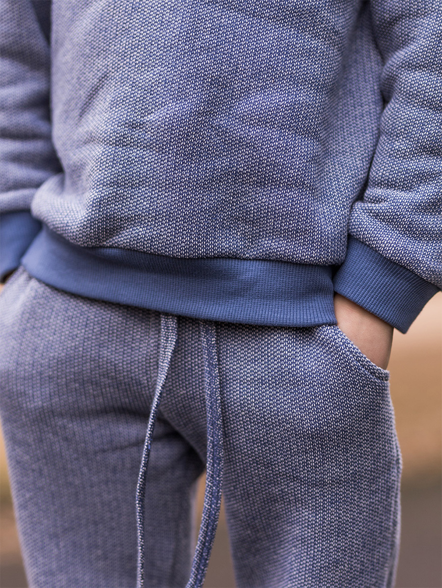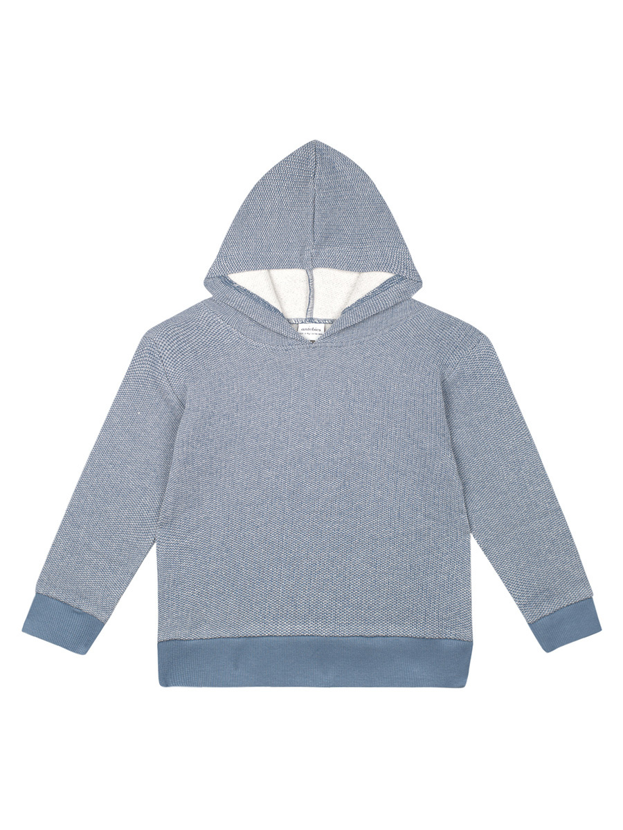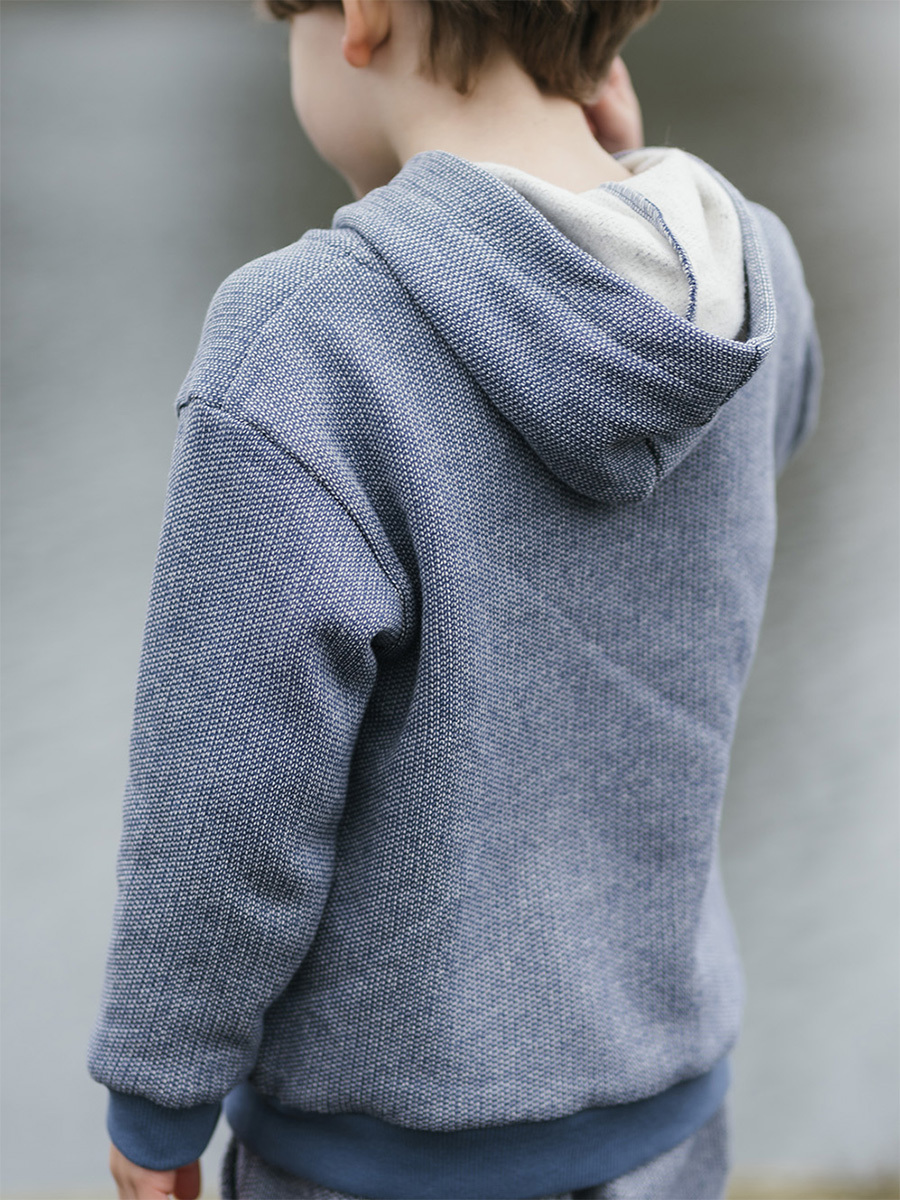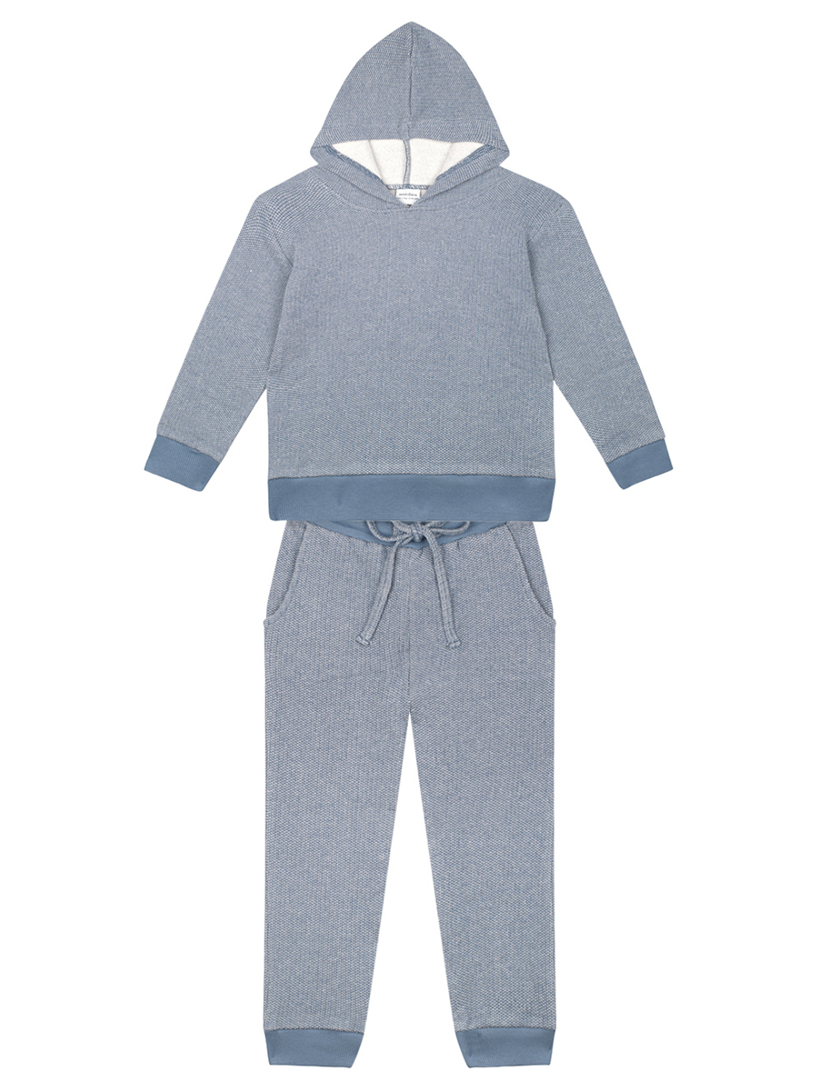 Organik Mavi Kapüşonlu Erkek Çocuk Eşofman Takımı