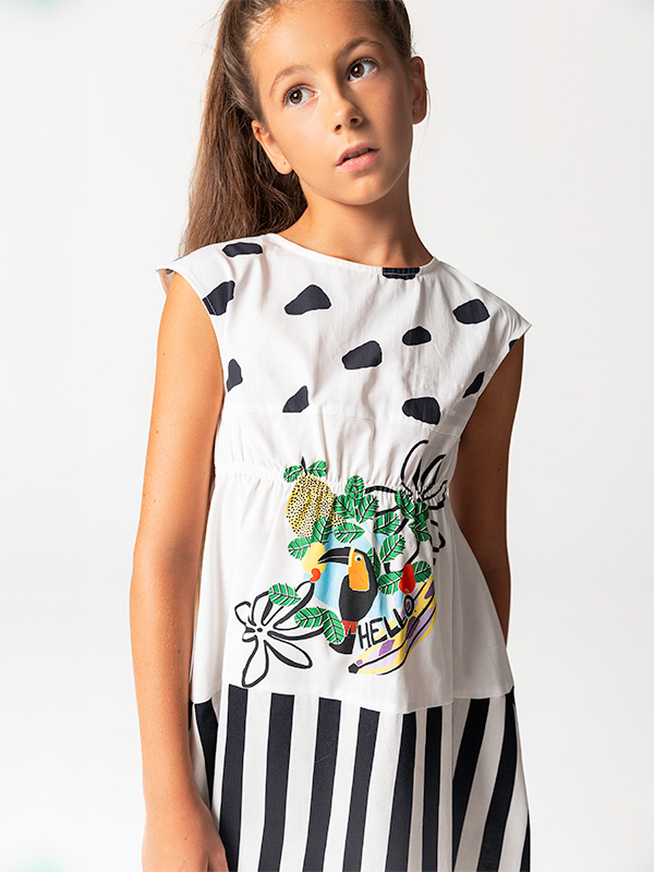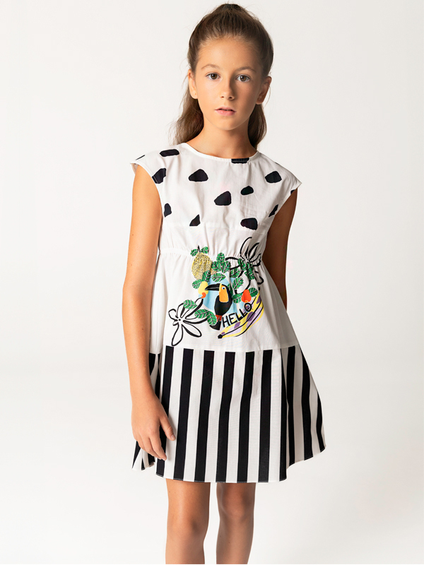 Papağan Desenli Pamuklu Kız Çocuk Elbise