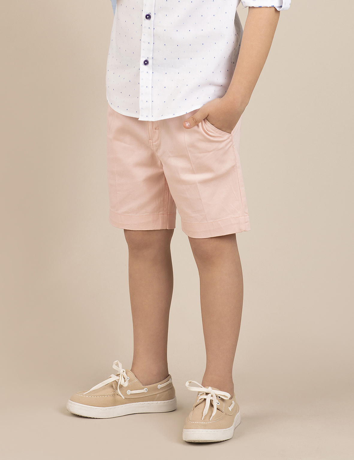 Gabardin dokuma kumaştan erkek çocuk şort. Fonksiyonel ön V cepler ve fleto arka cepler. %98 pamuk %2 elastan