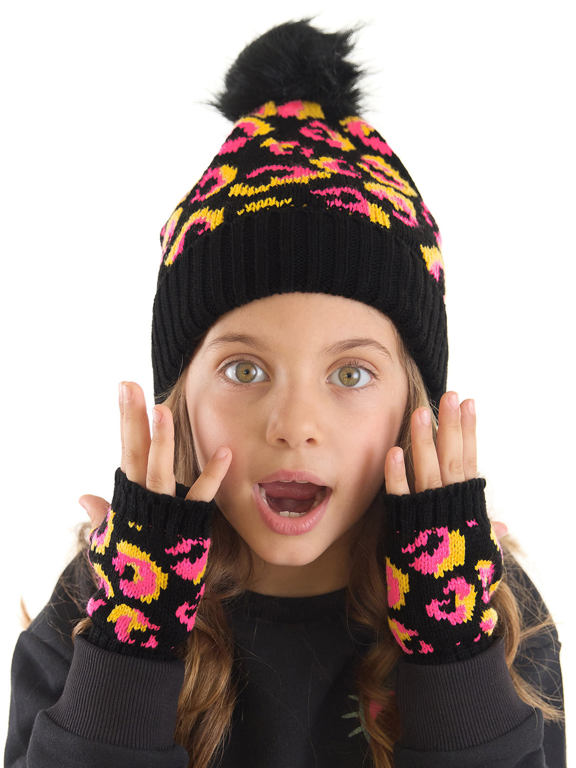 Pembe Leopar Kız Çocuk Bere Eldiven Takım