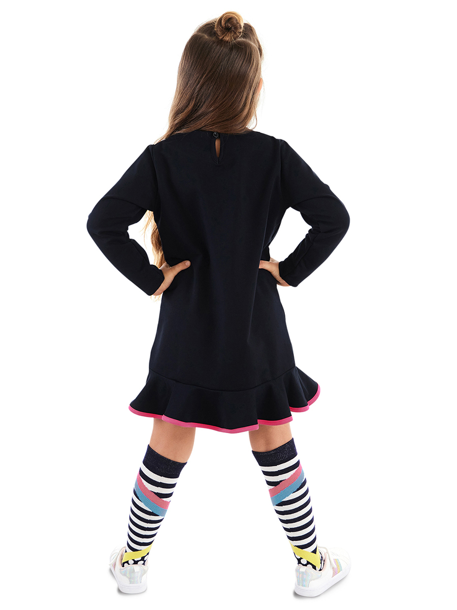 Siyah Perçem Kız Çocuk Uzun Kollu Elbise ve Çorap