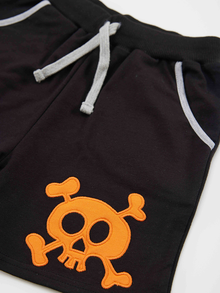 2 piece boy set. Cotton jersey t-shirt with a croco print on. The shorts is made of French Terry. Has elastic waist and strings. All Denokids Products are manufactured within the Kids Safety Guideline. Has been inspected by metal detectors.