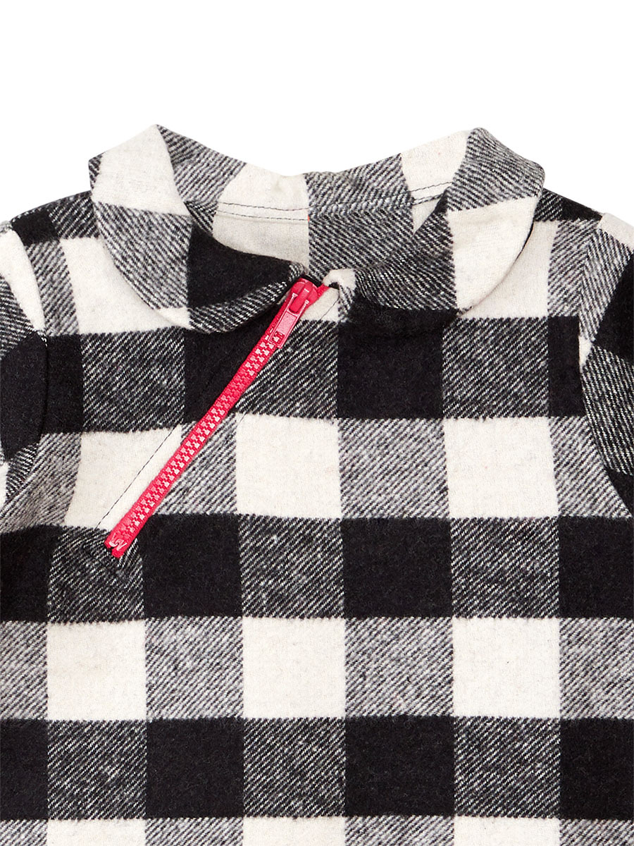 Checked dress with a special arm cut and a pompom toy on skirts. %80 Cotton %20 Polyester