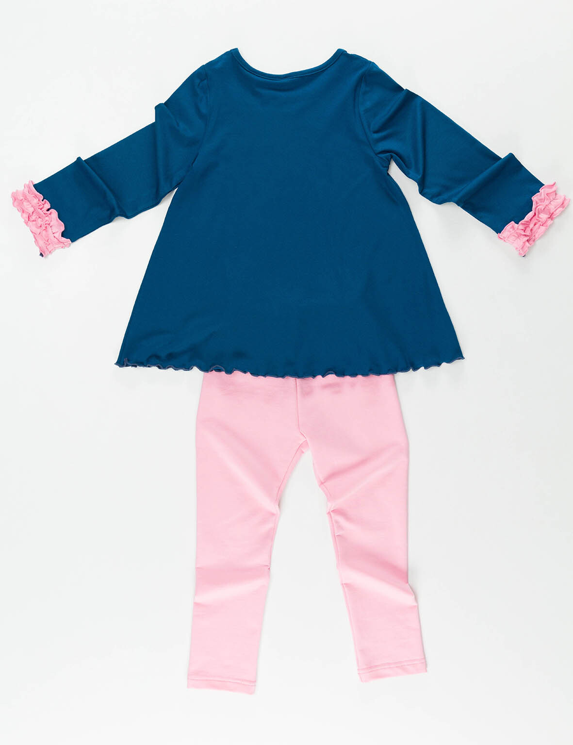 2'li takım. Kol uçları fırfırlı, önü sim baskılı tunik ve uyumlu tayt. Alt: %92 pamuk %8 elastan, Üst: %92 viskon %8 elastan