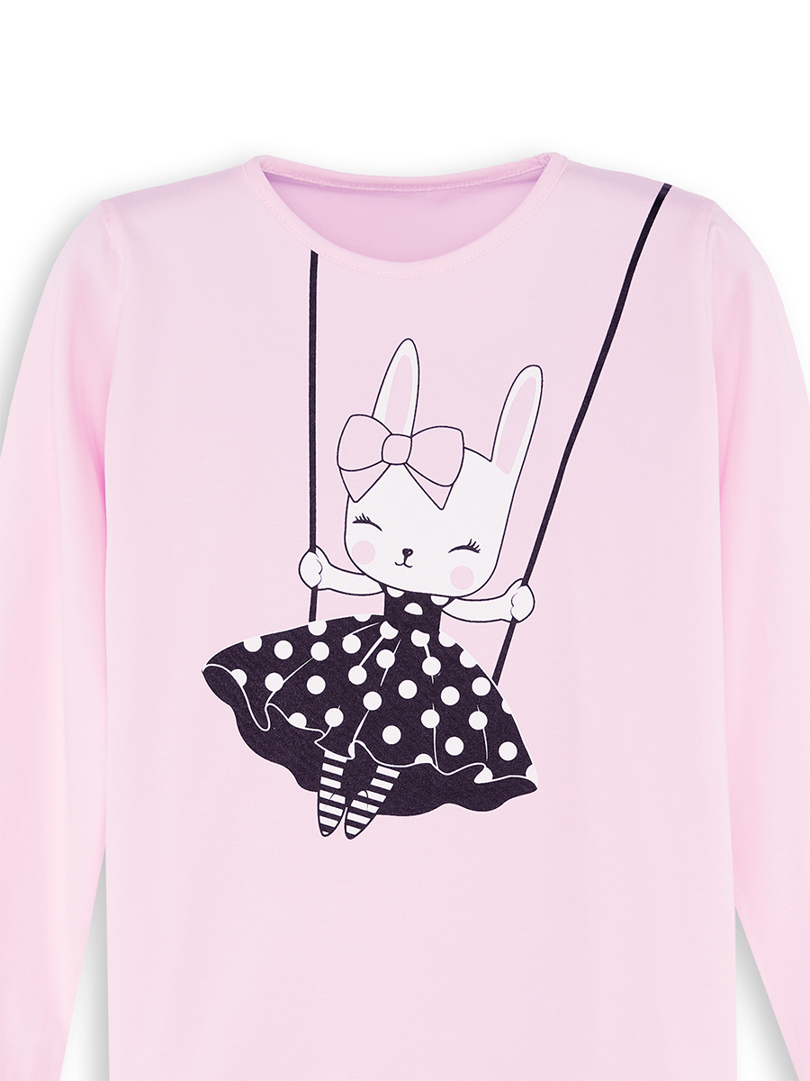 2 parça alt üst takım. Uzun kollu, sıfır yaka, pamuklu t-shirt. Üzeri tavşan baskılıdır. Takımın tamamlayıcısı orta kalın pamuklu elastik kumaştan tayt. Tayt tavşan aplikedir. Tavşanın eteği tül kumaştan 3 boyutlu olarak dikilmiştir. Tüm Denokids ürünleri çocuk güvenliği düşünülerek üretilmiştir ve iğne dedektörlerinden geçirilmiştir. Üst, Alt: %95 Pamuk %5 Elastan