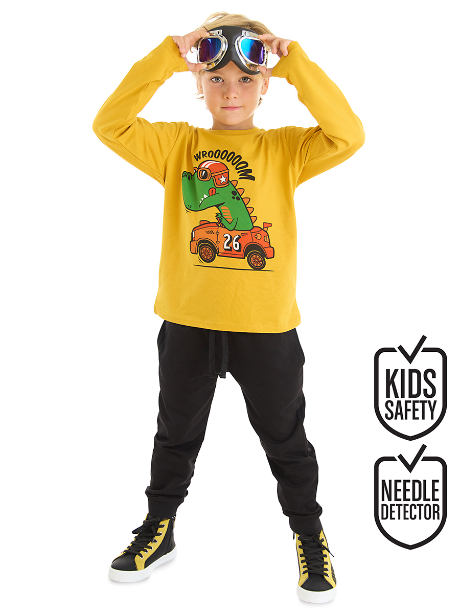 2 piece set. Printed, long sleeve, cotton jersey t-shirt. The set is completed with mid-thick cotton pants with 2 side pockets. Elastic waist and strings. All Denokids products are produced with kids safety guidelines.