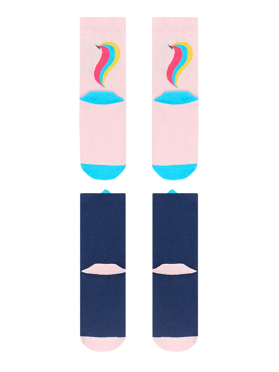 2-pack socks. Crafted in a soft cotton blend with knit-in Unicorn character. Long-lasting and comfy! All Denokids products are produced with kids safety guidelines. %80 Cotton %18 polyamide %2 elastane