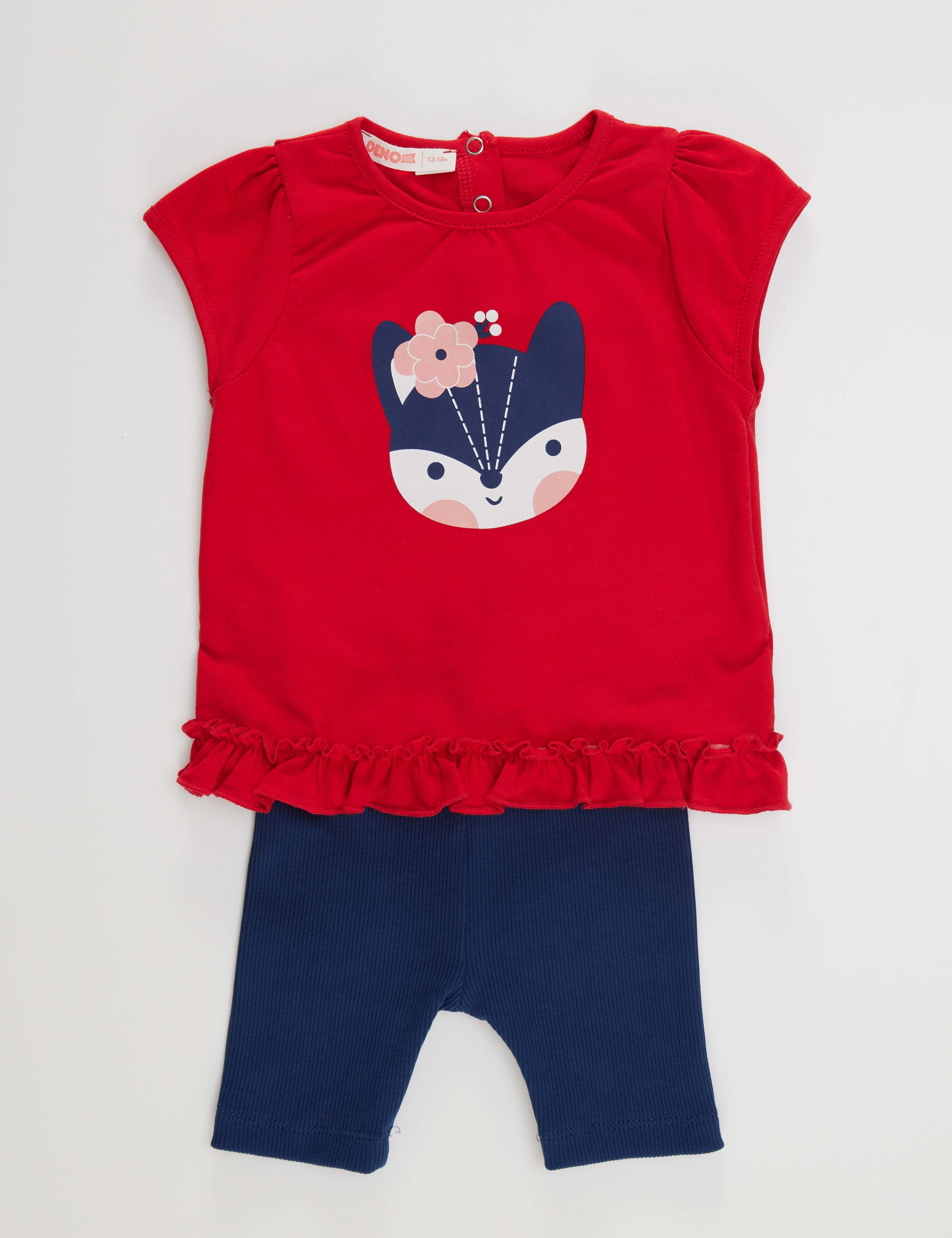 2 piece baby girl set. Cotton jersey top with a cute fox print on. The leggings is made of elastic cotton jersey fabric. All Denokids Products are manufactured within the Kids Safety Guideline. Has been inspected by metal detectors.