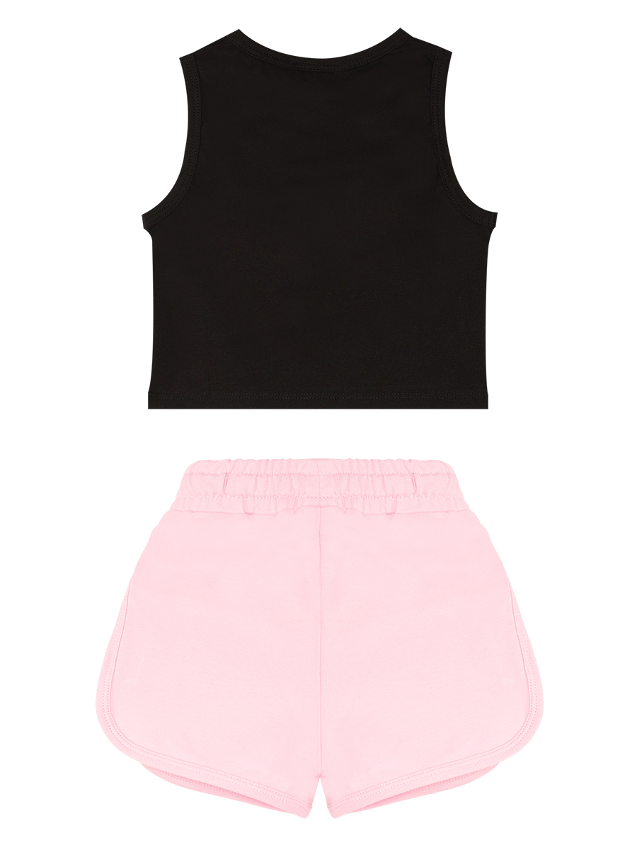 Rock Life Kız Çocuk Siyah Pembe Yazlık Crop T-shirt Şort Takım