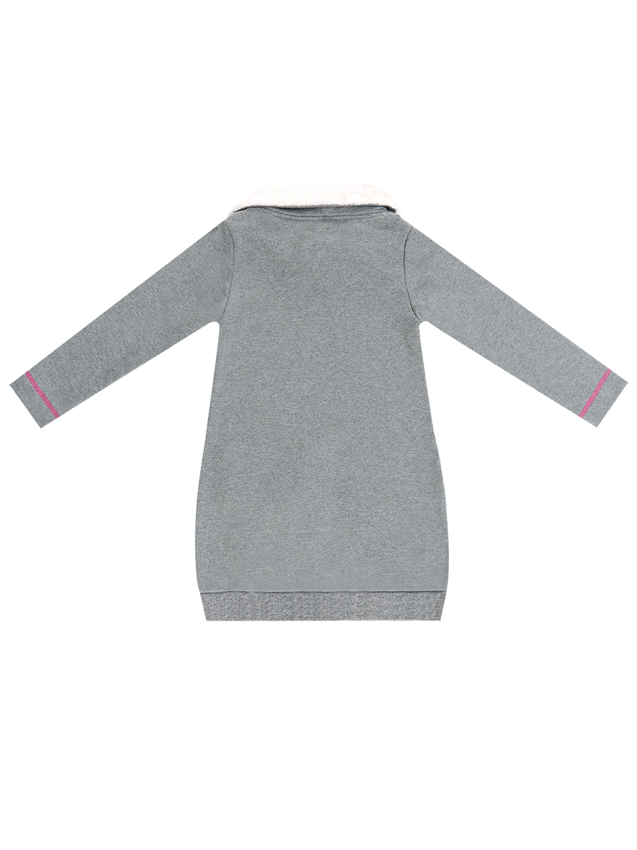 Şal Yaka Kedi Cepli Peluş Kız Çocuk Gri Kışlık Elbise