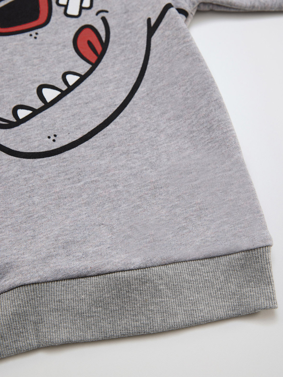 Kalın, pamuklu, kışlık kumaştan erkek çocuk sweatshirt. Üzeri dinozor baskılıdır. Bir kolunda 3 boyutlu dinozor tırtırları vardır. Tüm Denokids ürünleri çocuk güvenliği düşünülerek üretilmiştir ve iğne dedektörlerinden geçirilmiştir. Üst: %70 Pamuk %30 Polyester